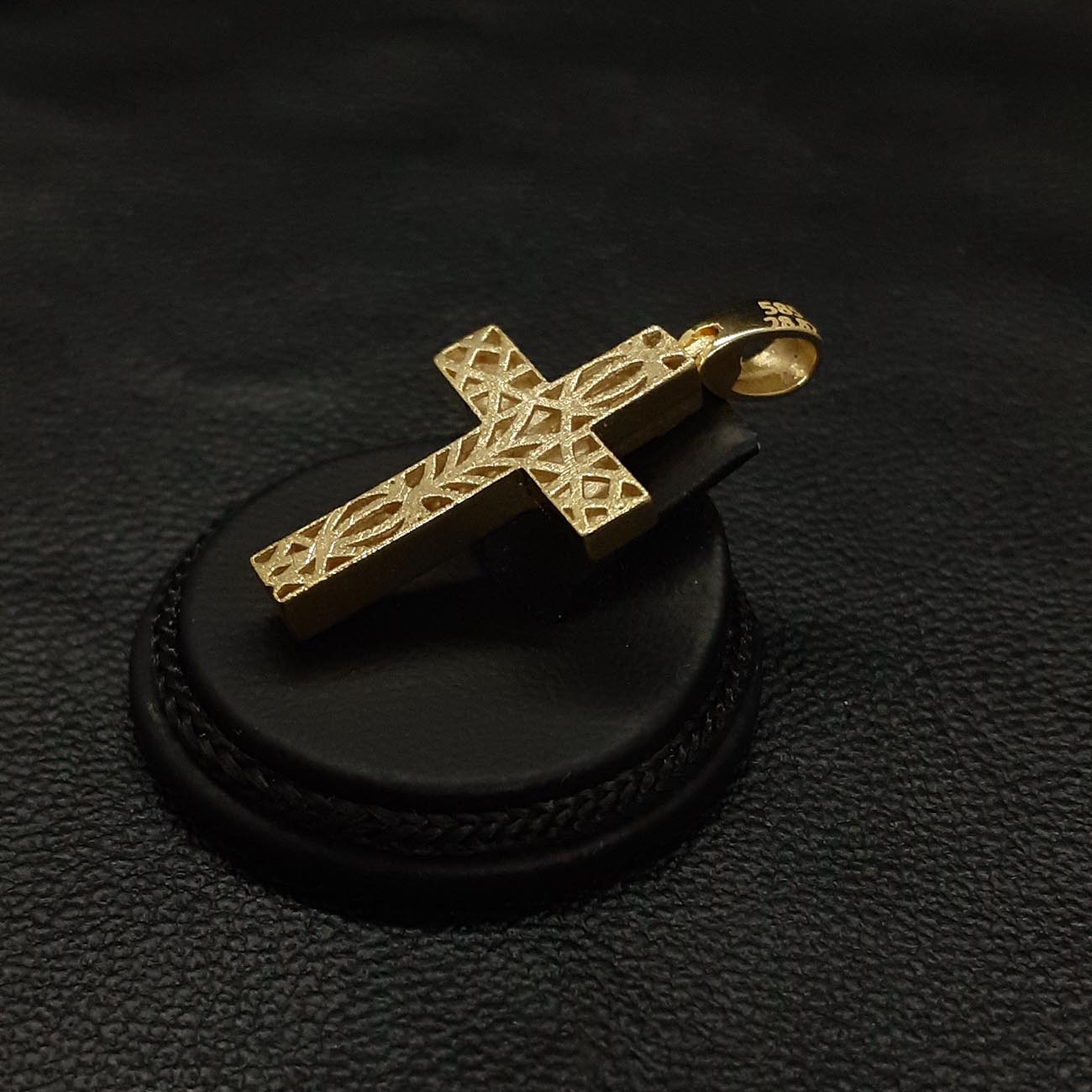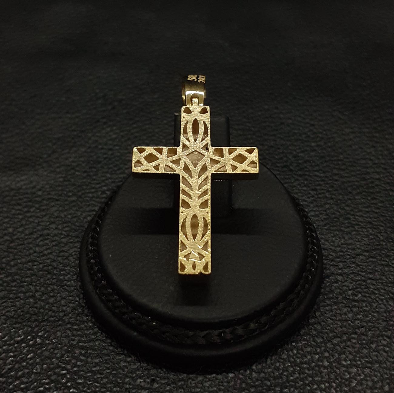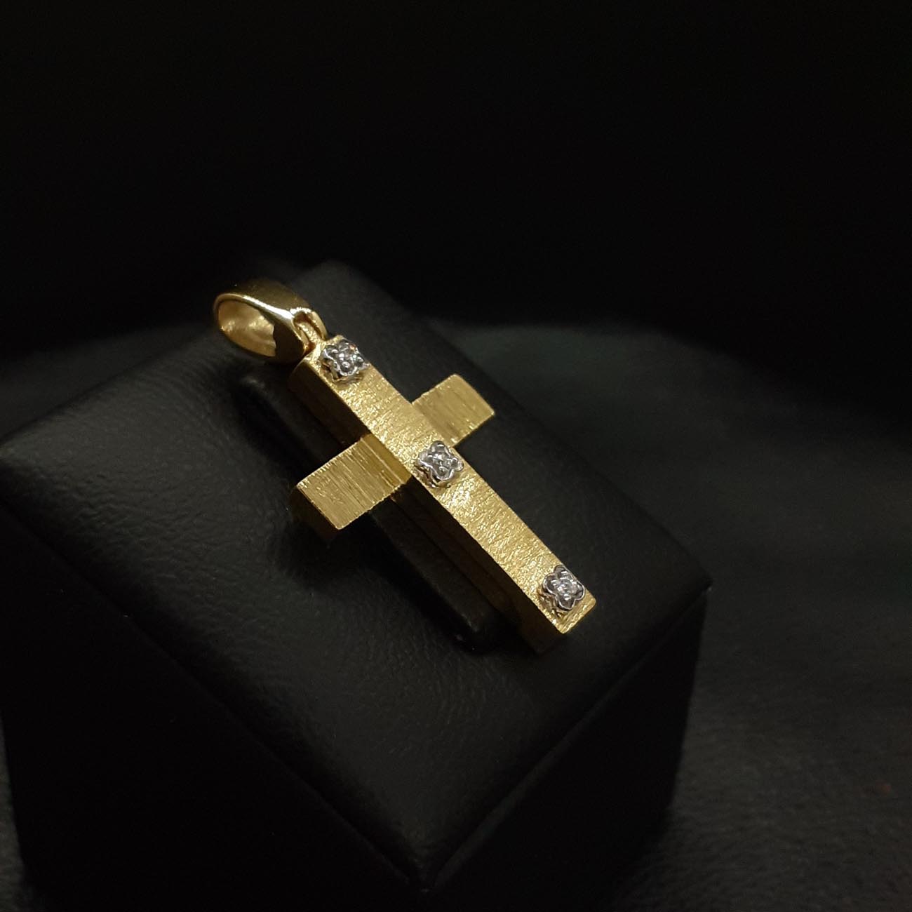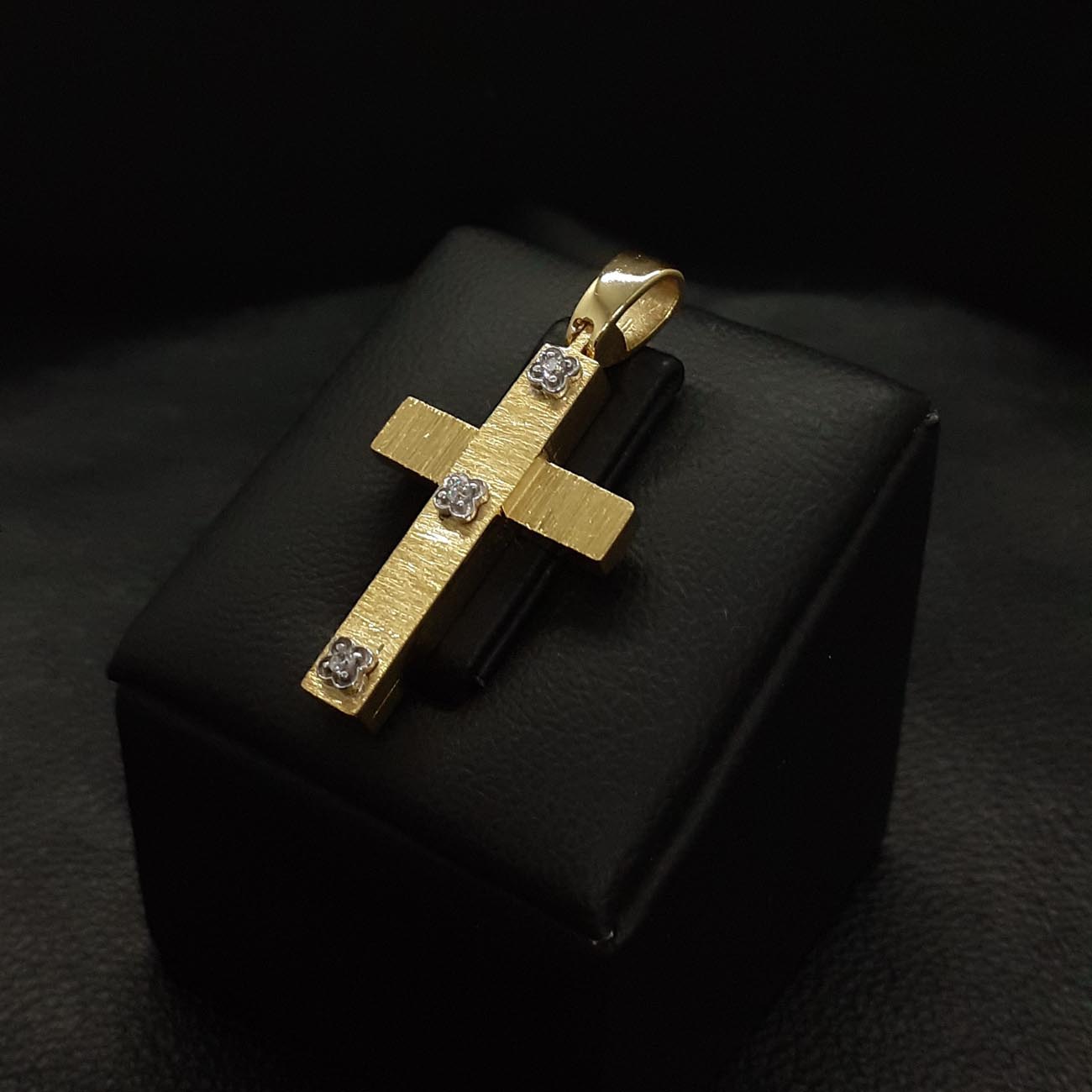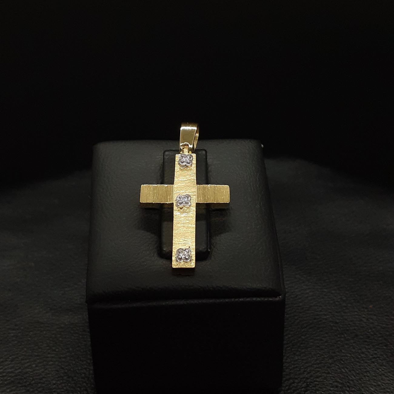 Μοναδικής ομορφιάς σταυρός από χρυσό 14 καρατίων, περίτεχνα επεξεργασμένη ζαγρέ επιφάνεια, ντούμπλ-φας, με 3 λαμπερά ευδιάκριτα ζιργκόν με σχέδιο λουλουδάκι στην κάθετη πλευρά του και μια εντυπωσιακή πίσω πλευρά με πανέμορφο σκάλισμα. Ένα πολύ μοντέρνο κομμάτι , η τελειότερη επιλογή για βάπτιση κοριτσιού ή για δώρο στην αγαπημένη μας. FASHION TIP : ΦΟΡΙΕΤΑΙ ΩΡΑΙΟΤΑΤΑ ΚΑΙ ΑΠΟ ΤΙΣ 2 ΠΛΕΥΡΕΣ ΤΟΥ με αποτέλεσμα να αποκτάτε ουσιαστικά 2 σταυρούς στην τιμή του ενός.