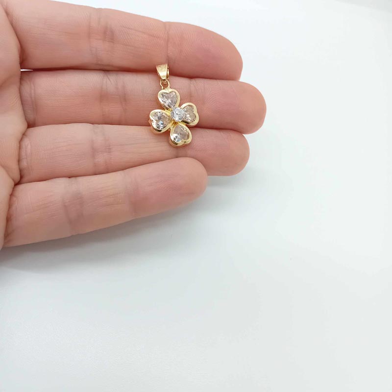 Ο πιο ρομαντικός σταυρός από χρυσό 14 καρατίων, εντυπωσιακή θηλυκή γραμμή, με πελώρια λευκά ζιργκόν μέσα σε 4 καρδιές και κεντρικό ξεχωριστό λευκό ζιργκόν με μεγάλο κρίκο.