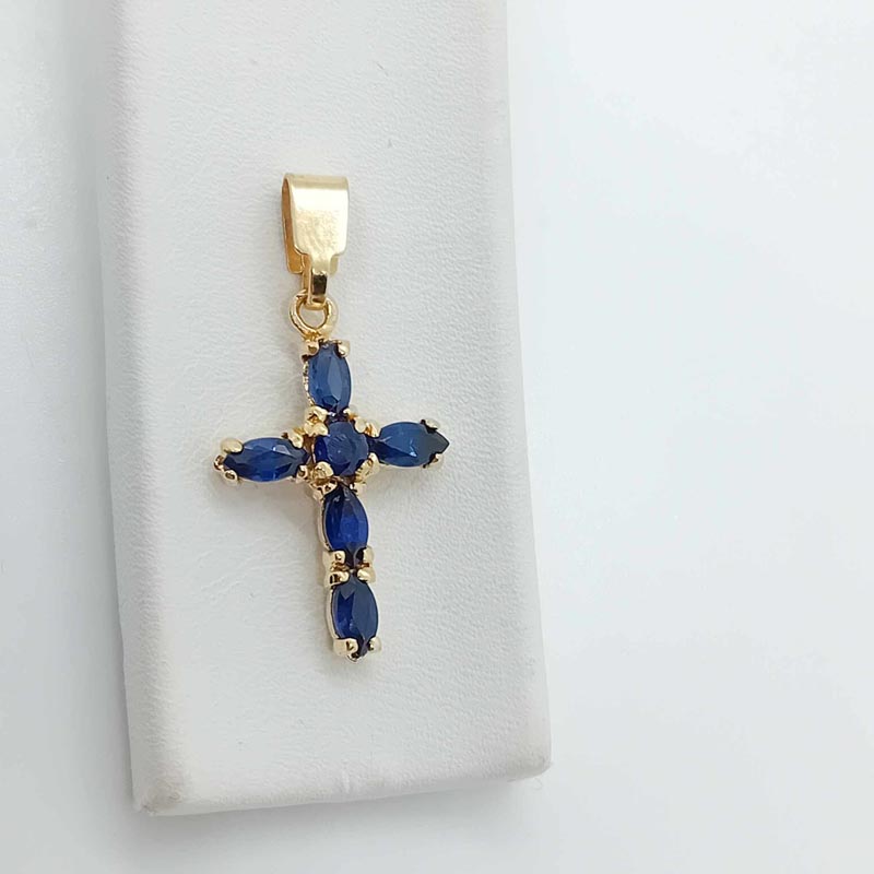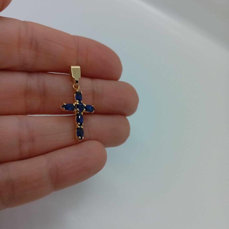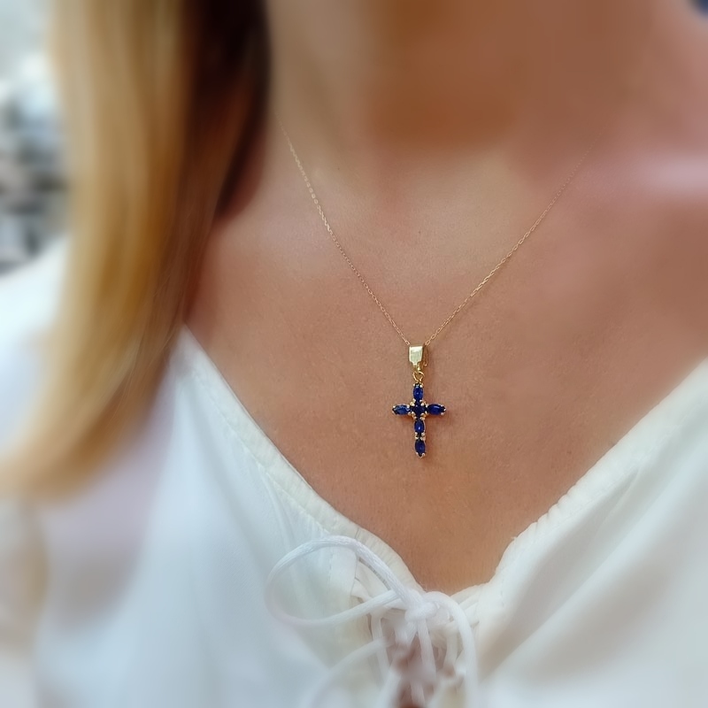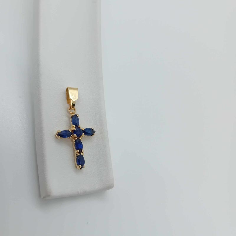 Κομψός, περίτεχνος και εντυπωσιακός σταυρός , πολύτιμος , από χρυσό 14 ΚΑΡΑΤΙΑ , με υπέροχο design με μπλε σκούρο ζιργκόν και εντυπωσιακό μεγάλο κρίκο. (ΠΡΟΣΟΧΗ: ΤΟ ΠΡΟΪΟΝ ΔΕΝ ΠΕΡΙΛΑΜΒΑΝΕΙ ΑΛΥΣΙΔΑ)