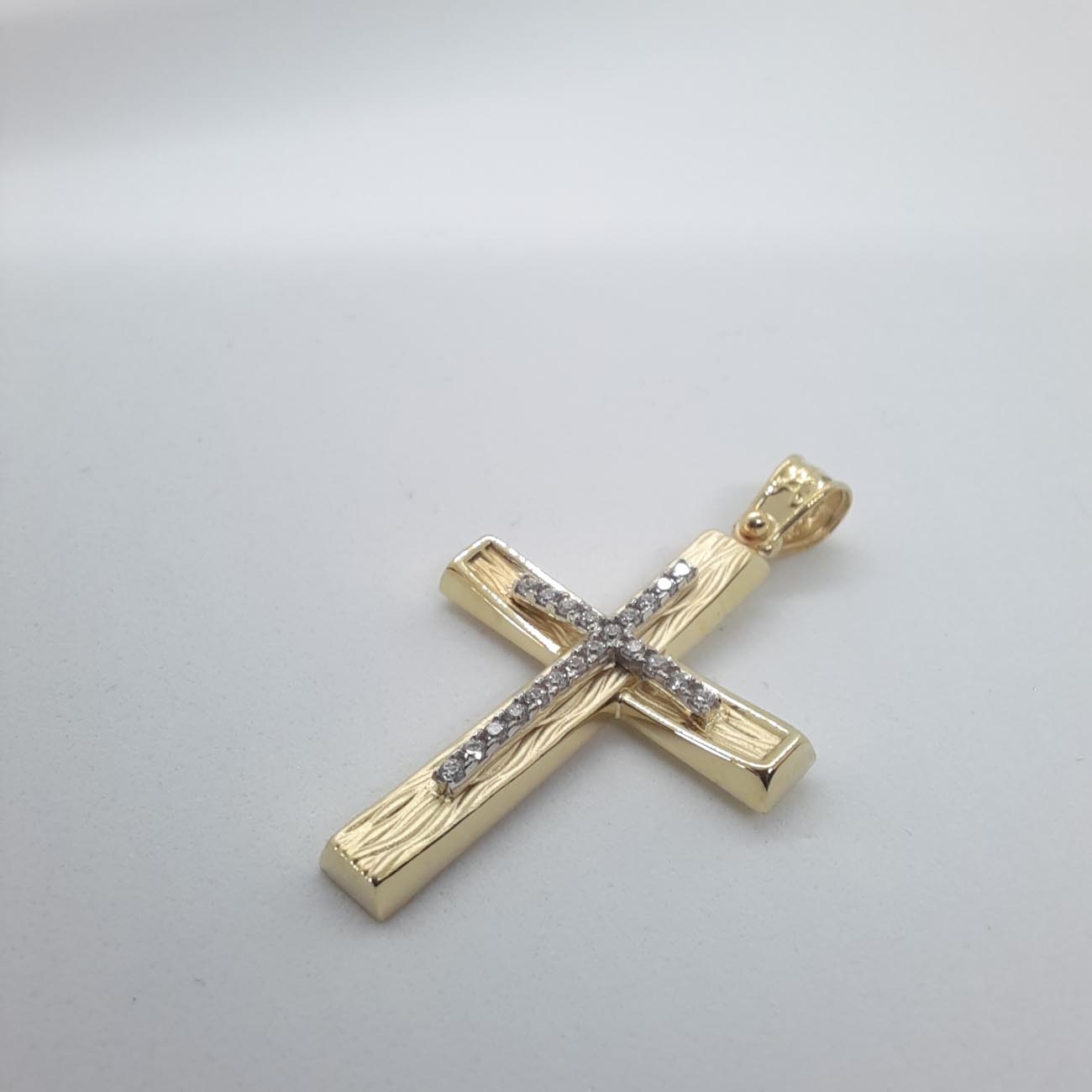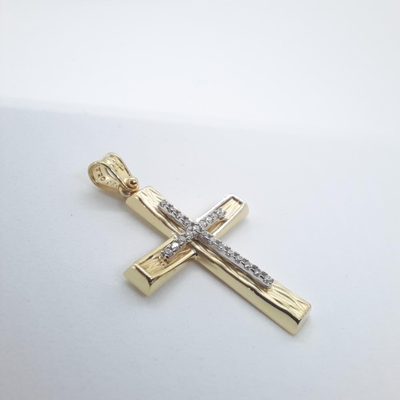 Με υπέροχα σκαλισμένη επιφάνεια και design εμπνευσμένο από την ομορφιά της φύσης και των δέντρων, σταυρός από χρυσό 9 καρατίων, λουστρέ φινιρίσματα στις άκρες του, γοητευτική καμπυλότητα στην οριζόντια γάμπα και σταυρό από ζιργκόν στο κέντρο. Τέλεια επιλογή για βάπτιση κοριτσιού ή για δώρο αγάπης.