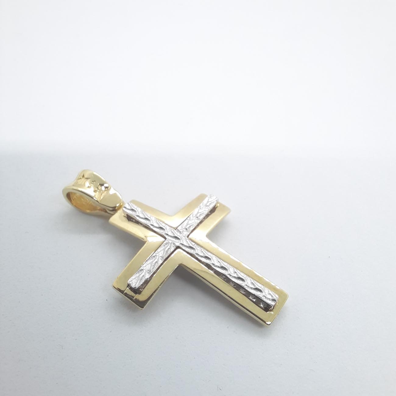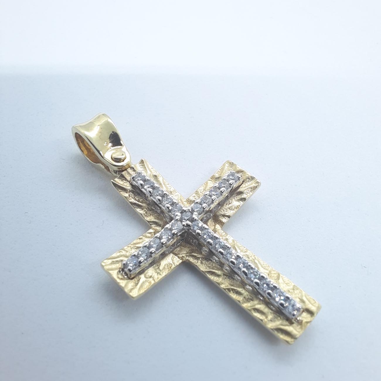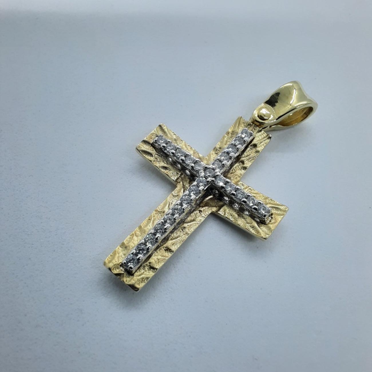 Χρυσός σταυρός με ζιρκόν Κ14 2 όψεων