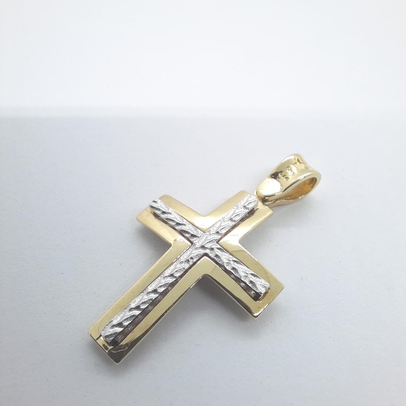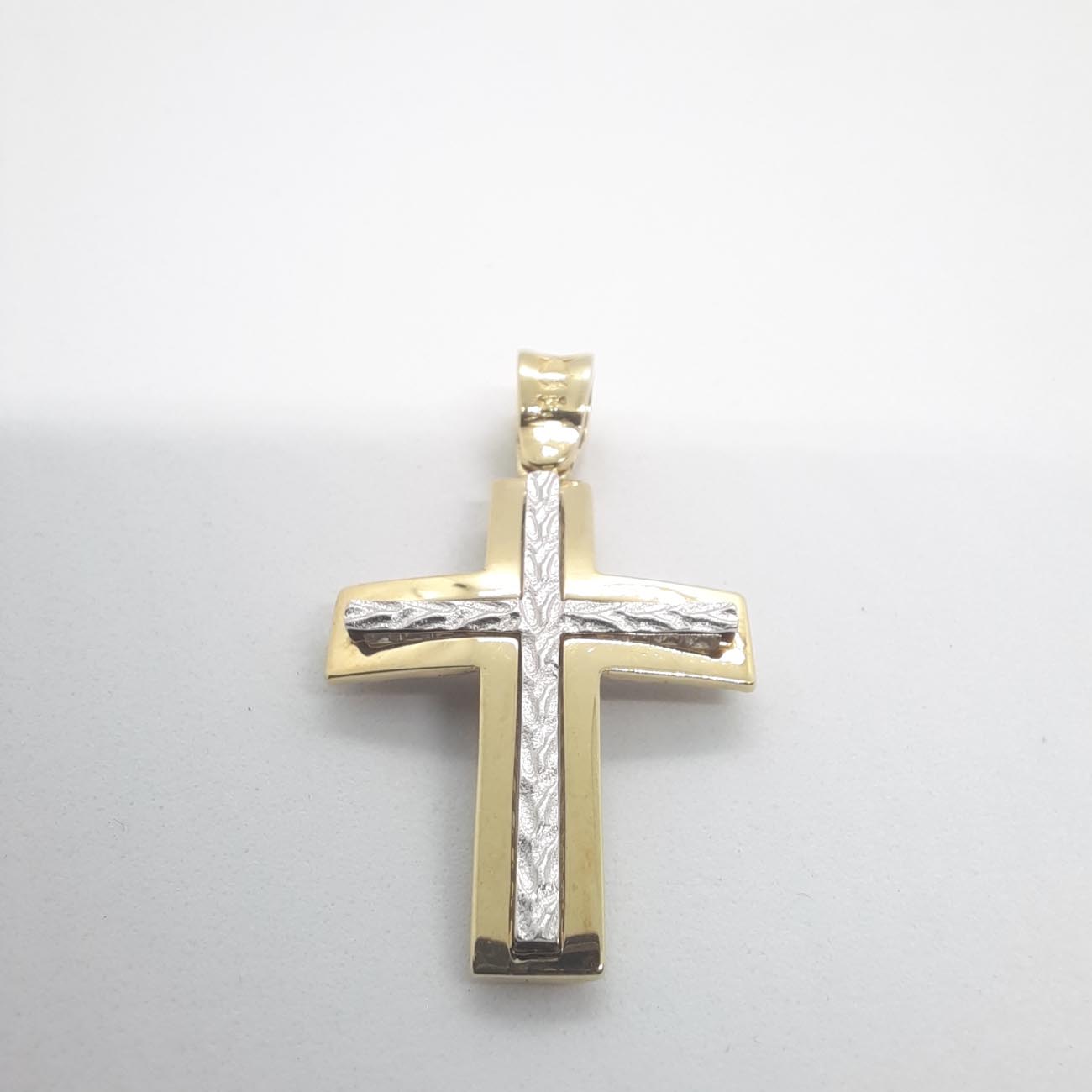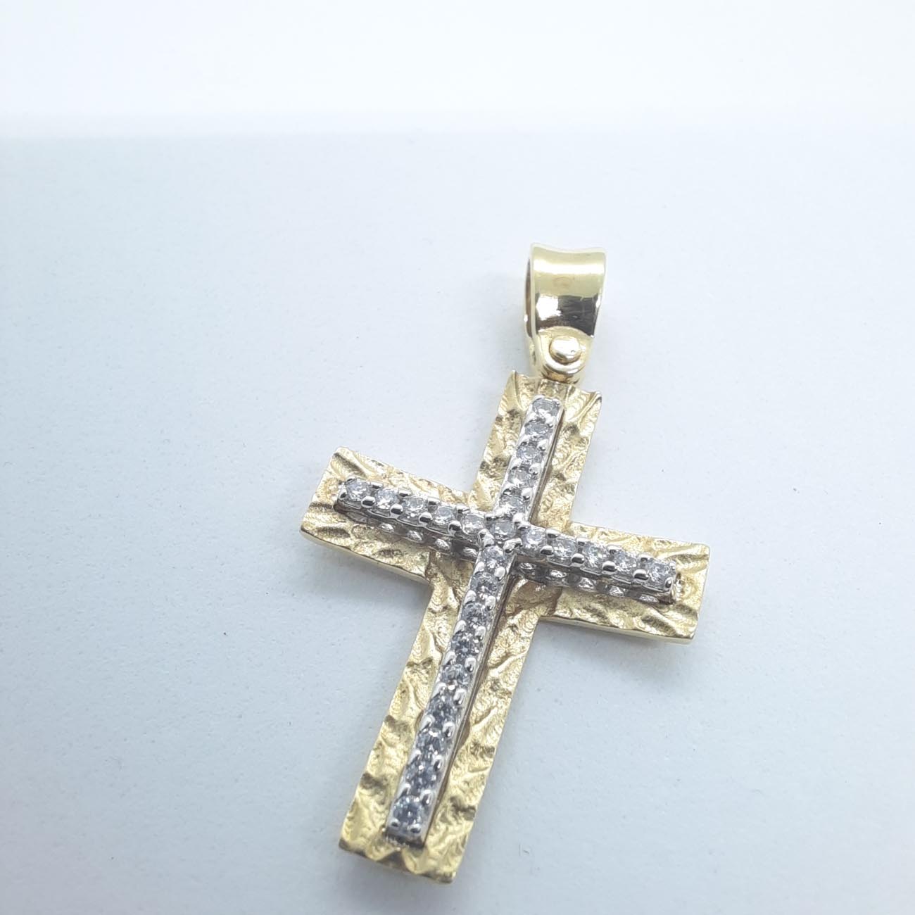 Χρυσός σταυρός με ζιρκόν Κ14 2 όψεων