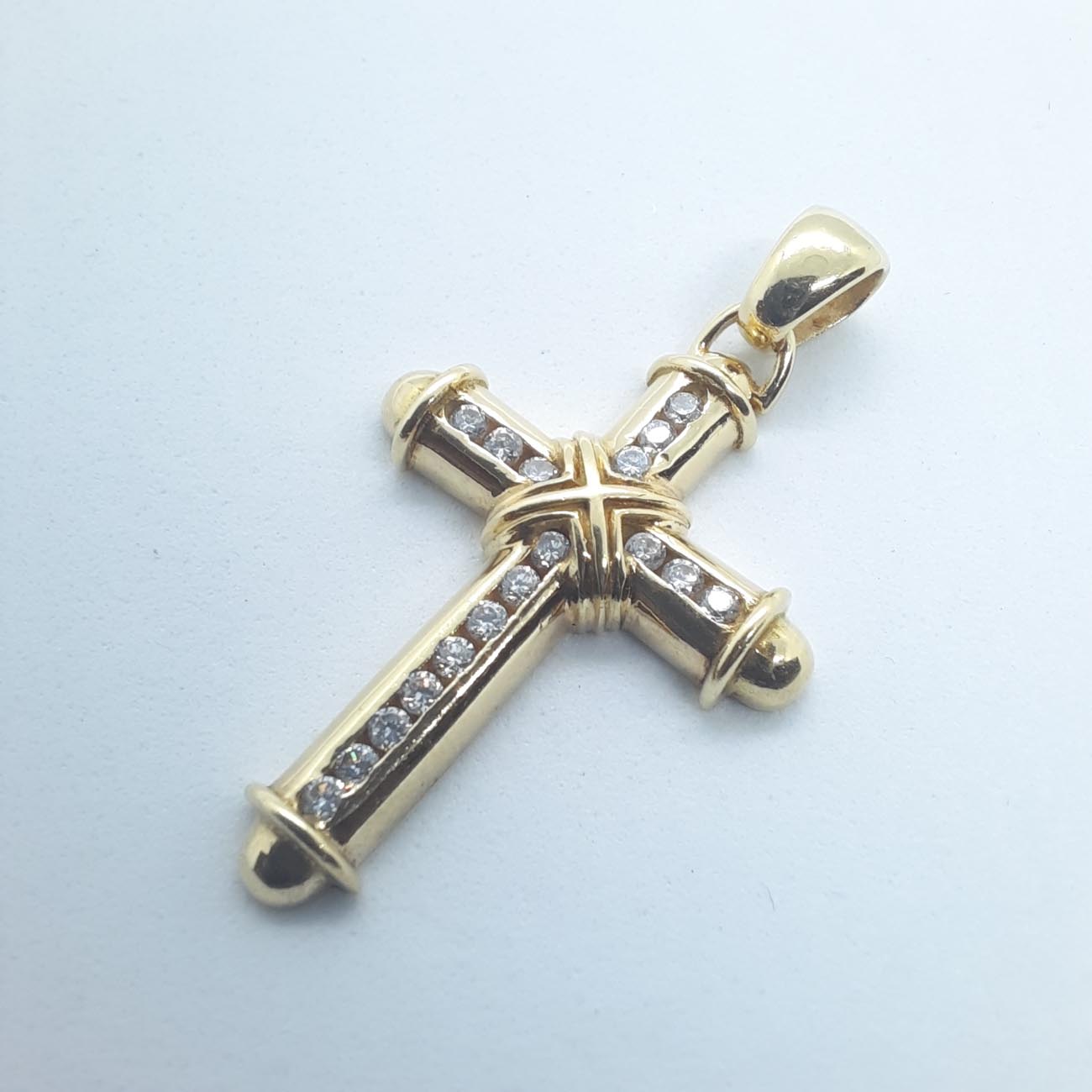 Πολύτιμη επιλογή ζωής! Ιδανικός και για βάπτιση σταυρός από χρυσό 14 καρατίων με αφθονία ζιργκόν,ιδιαίτερο σκάλισμα και μεγάλο κρίκο.