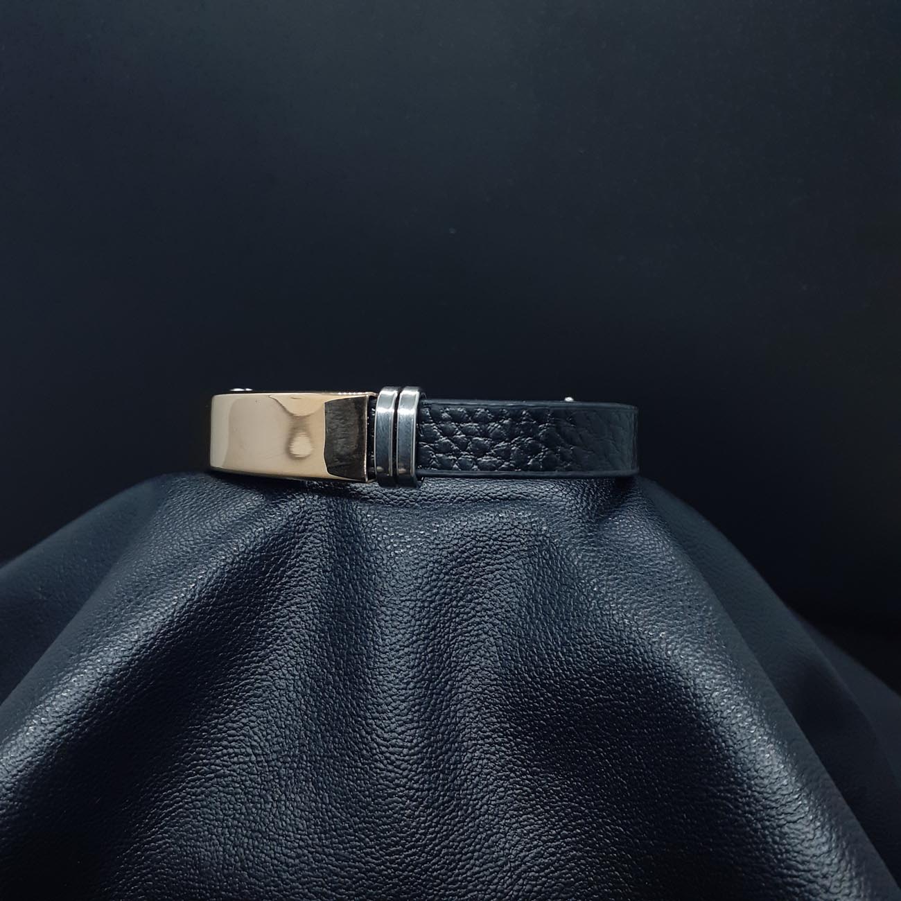 Βραχιόλι από ανοξείδωτο χειρουργικό ατσάλι σε χρώμα rose gold και δεμάτινο λουρί, για ένα όμορφο δώρο για τον άντρα για όλες τις ώρες της ημέρας του.