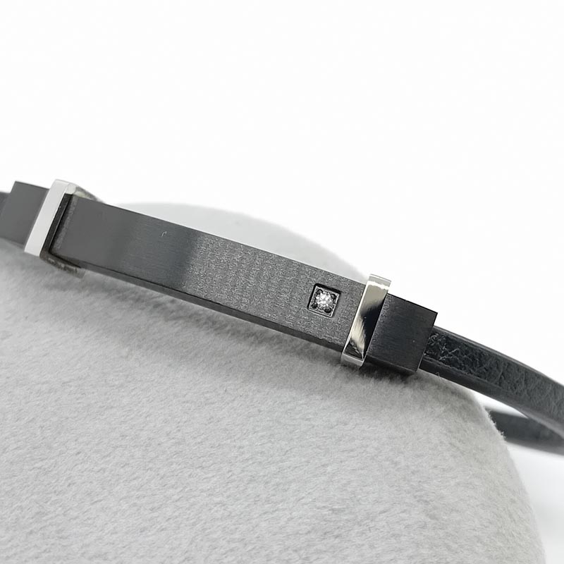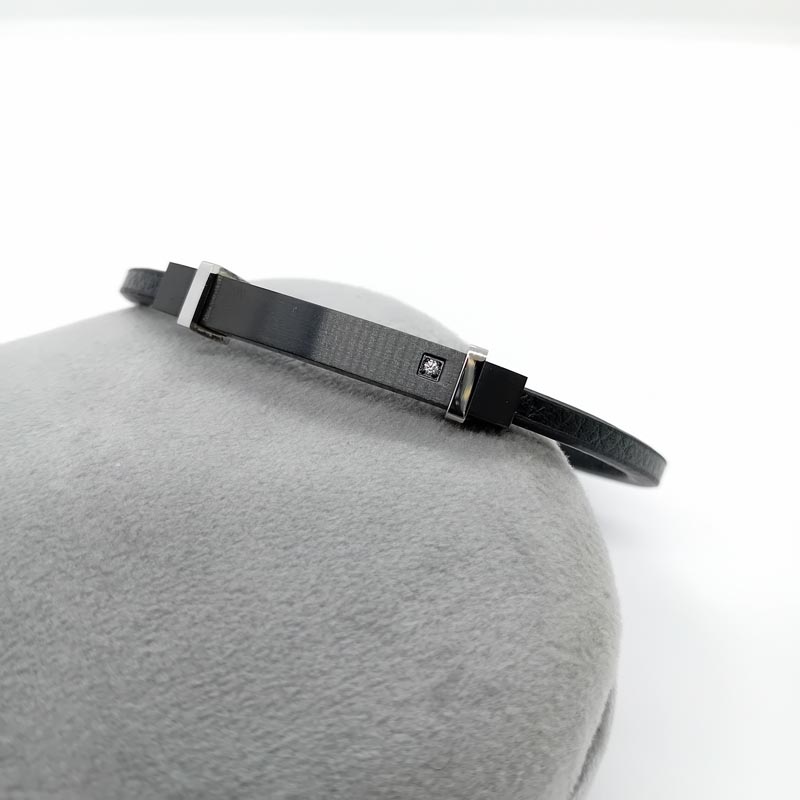 Αίσθηση πολυτέλειας και δυναμισμού για τον κομψό άντρα βραχιόλι αντρικό δέρμα μαύρο VISETTI με ένα ζιργκόν.