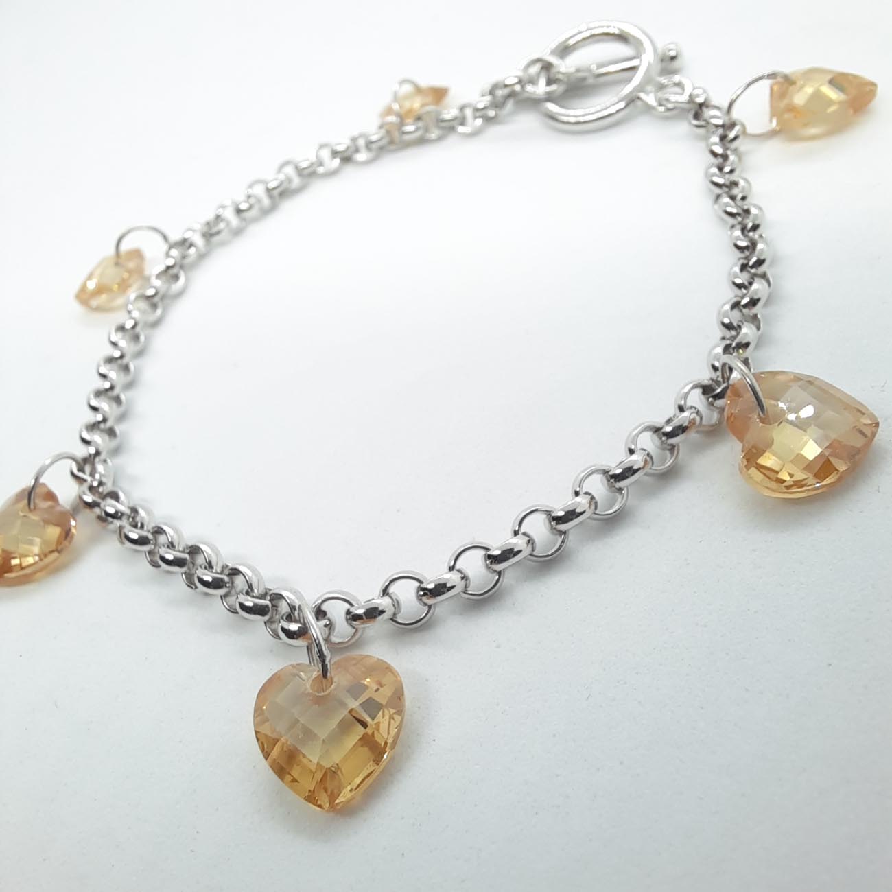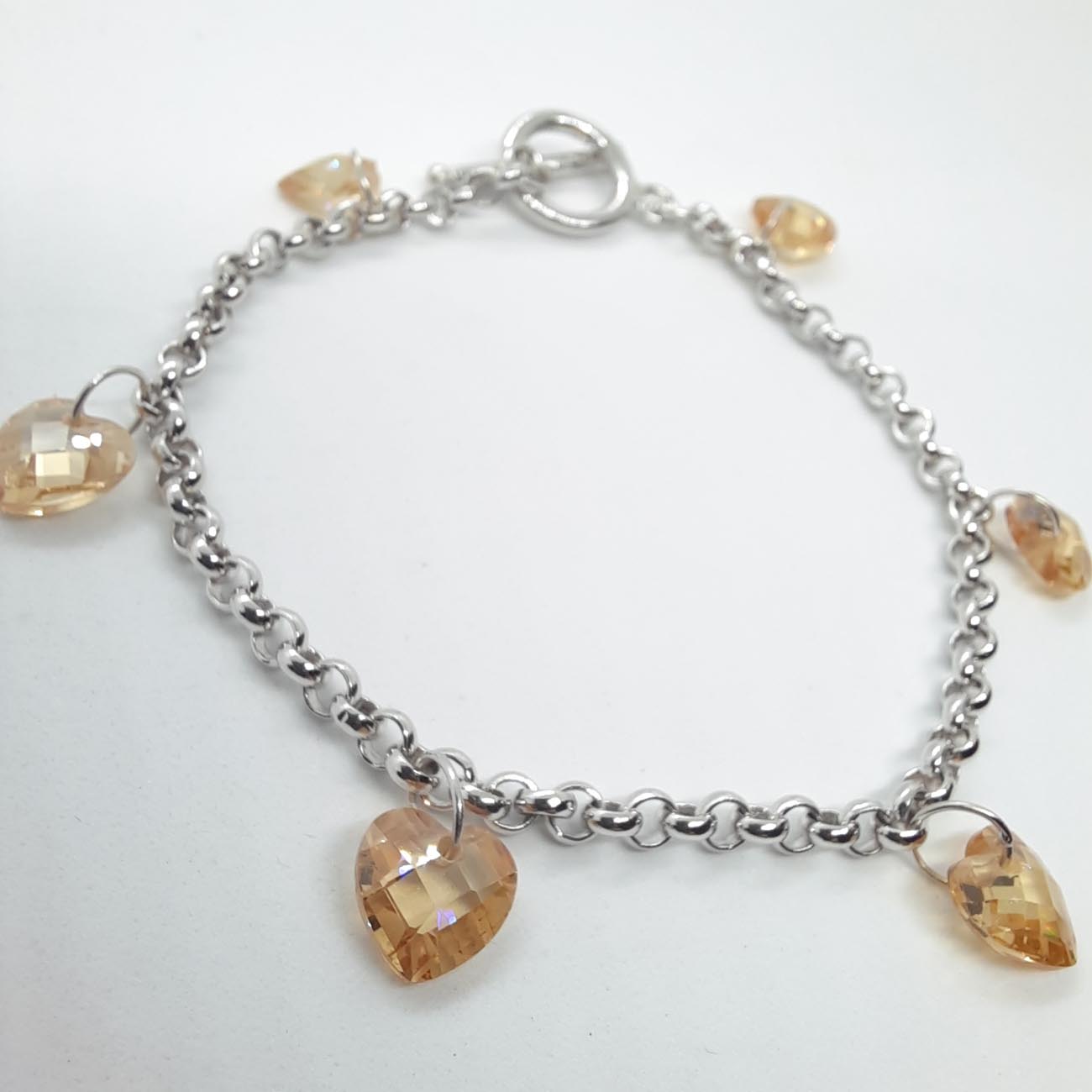Βάλτε χρώμα στην ζωή σας με αυτό το εντυπωσιακό ασημένιο βραχιόλι με τις λαμπερές καρδιές που ακτινοβολούν και το μοντέρνο κούμπωμα! Ιδανικό για την ερωτευμένη γυναίκα του σήμερα !