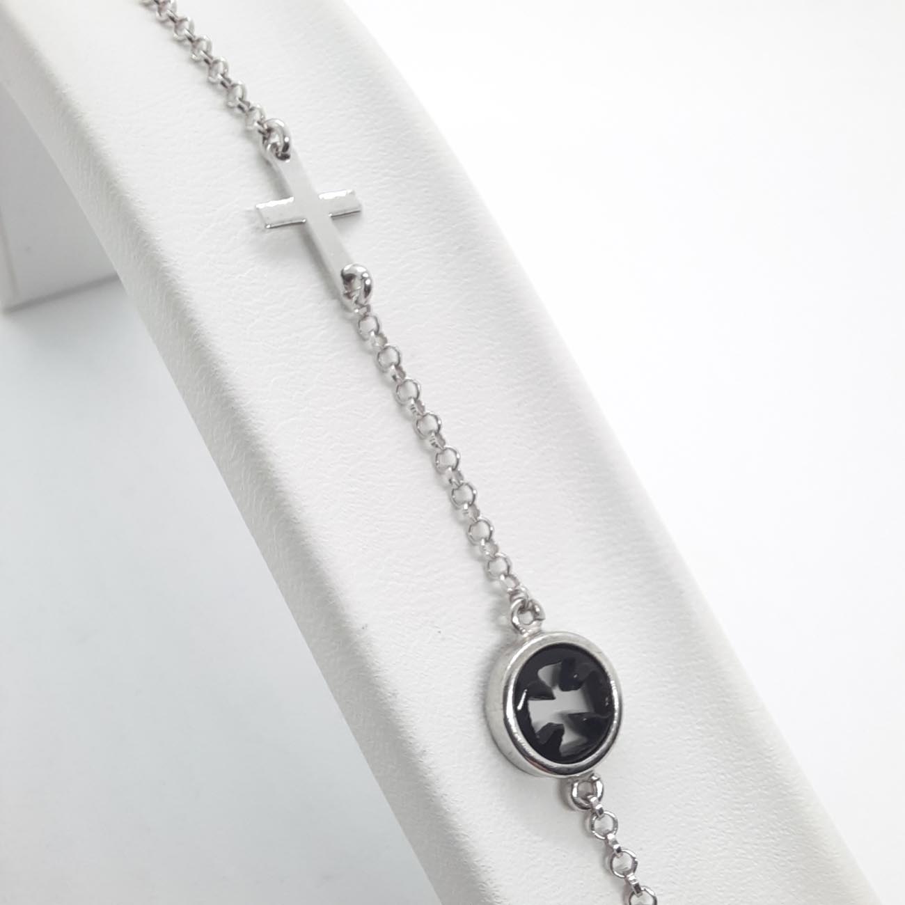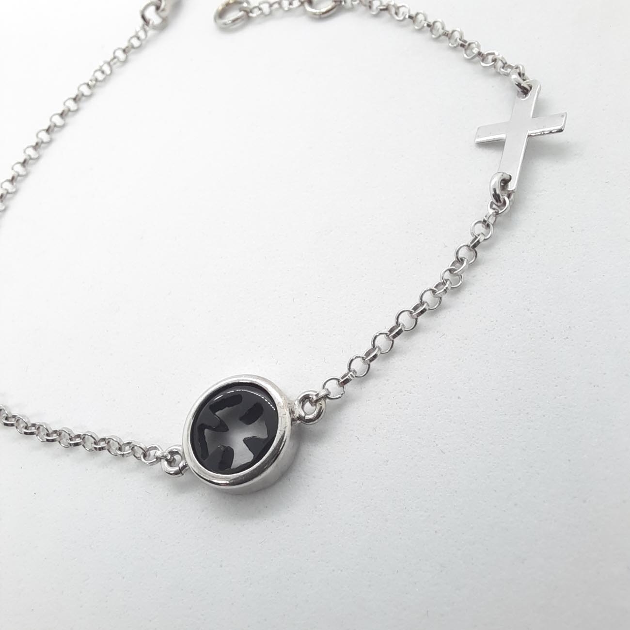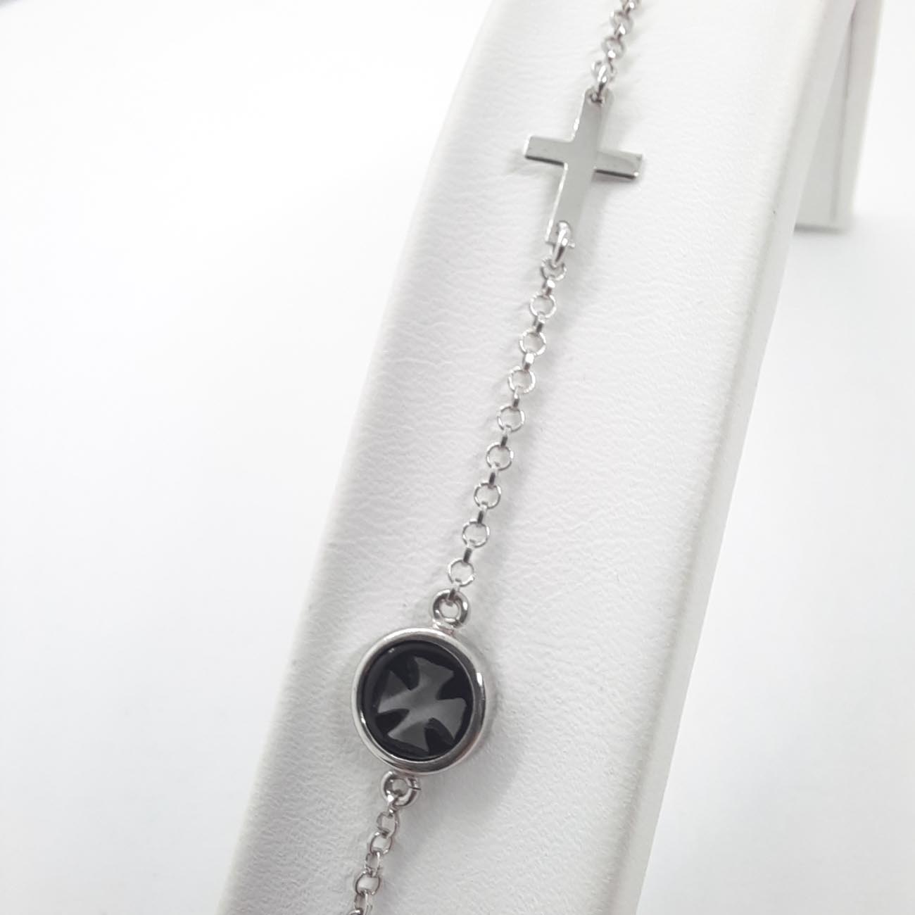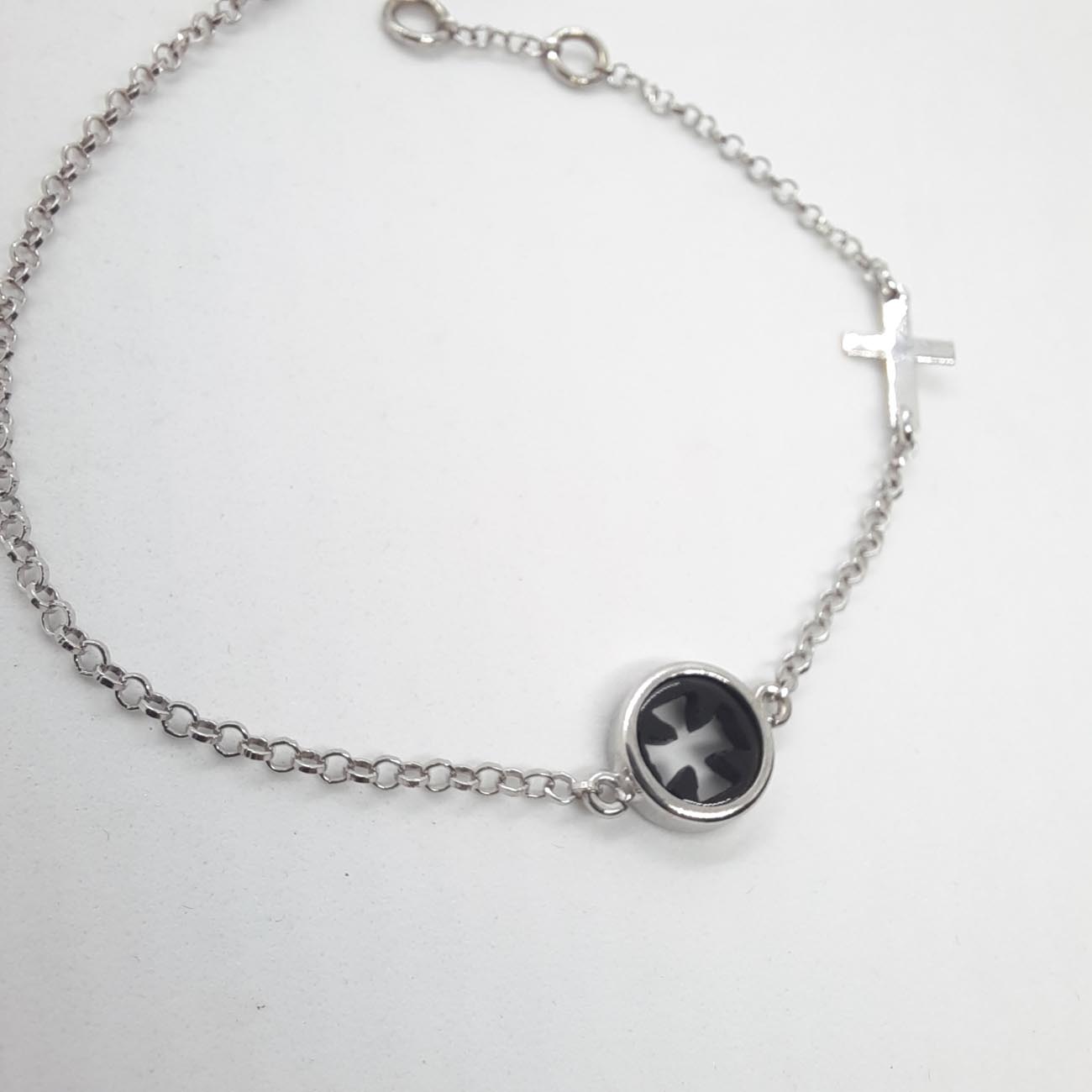 Λιτό και διακριτικό βραχιόλι με δύο σταυρούς, έναν λιτό και έναν σε μαύρο ροκ αισθητικής. FASHION TIP : φοριέται μεμονωμένο ή με πολλά άλλα βραχιόλια μαζί για ένα πιο απογειωμένο λούκ.