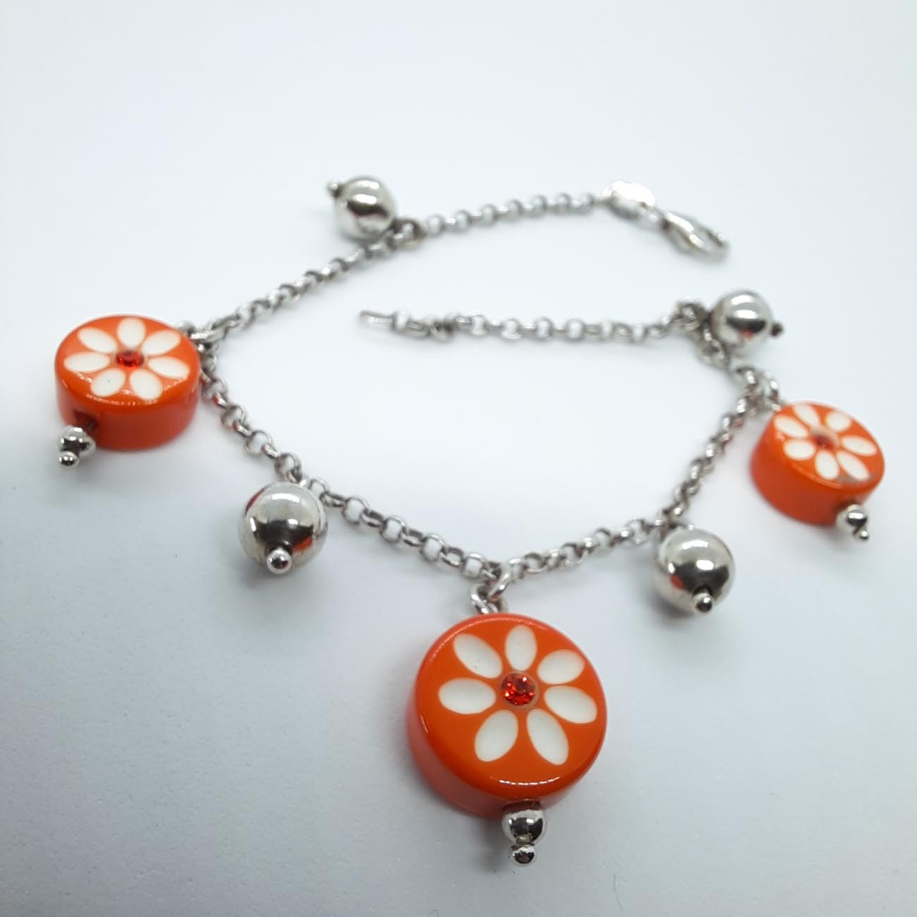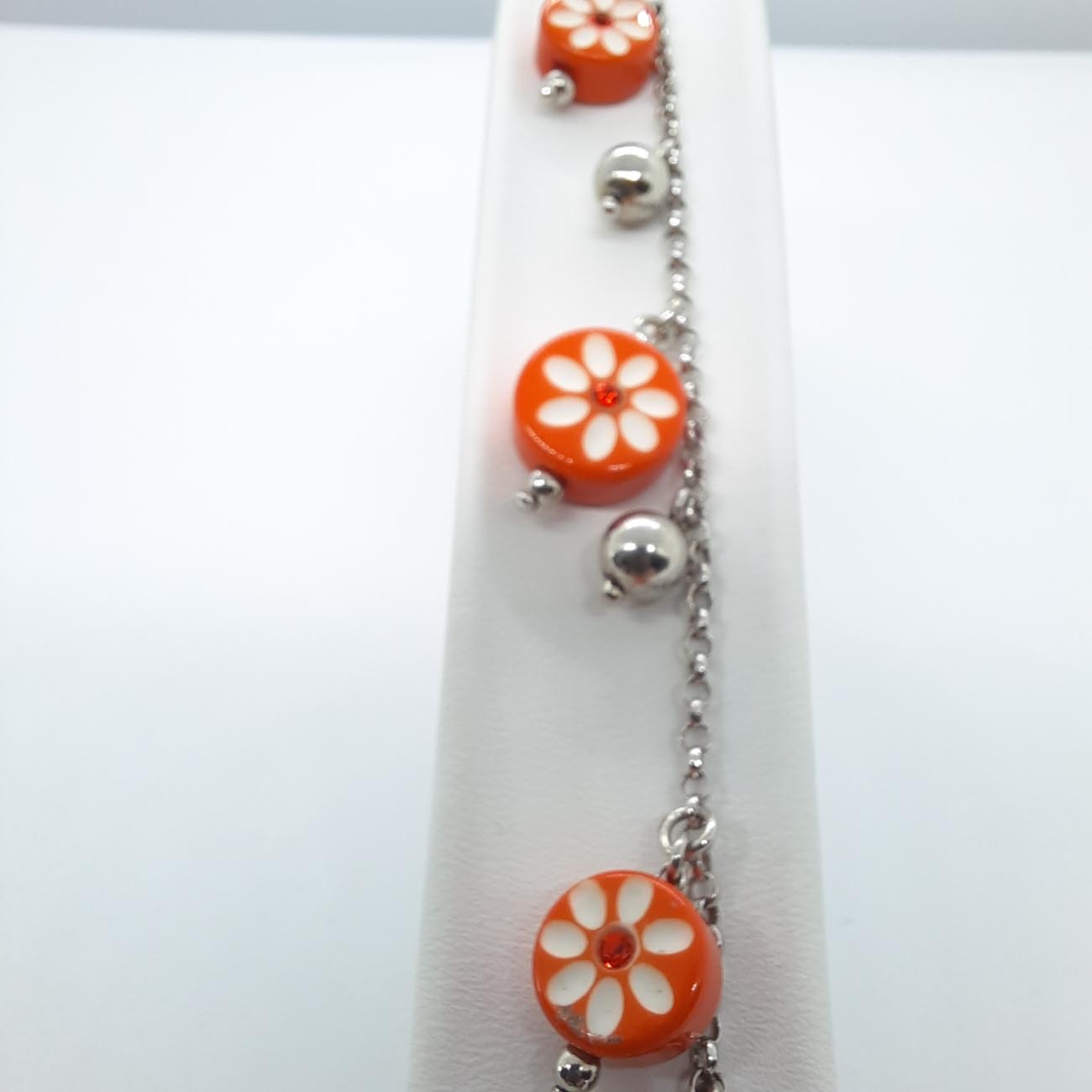 Ασημένιο βραχιόλι 9.25 πορτοκαλί μαργαρίτες
