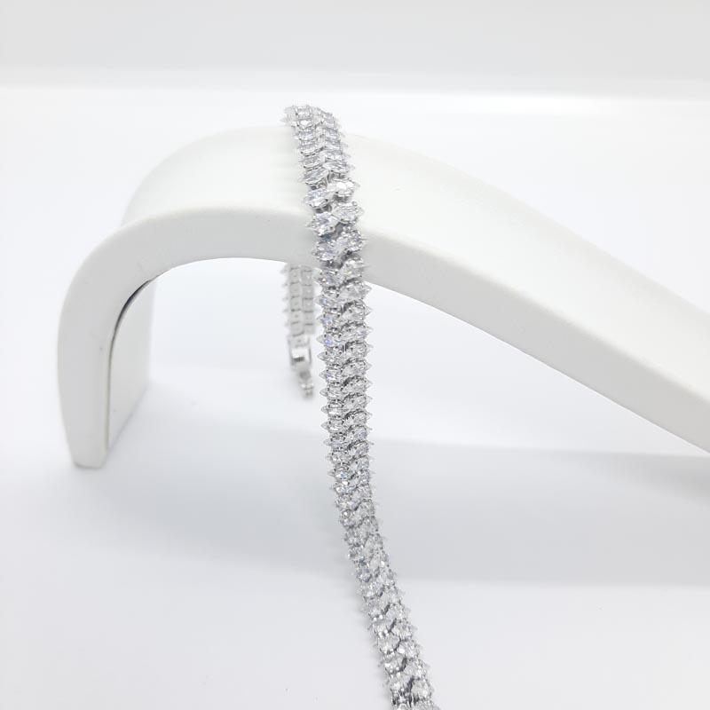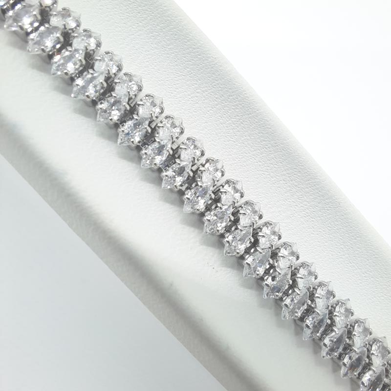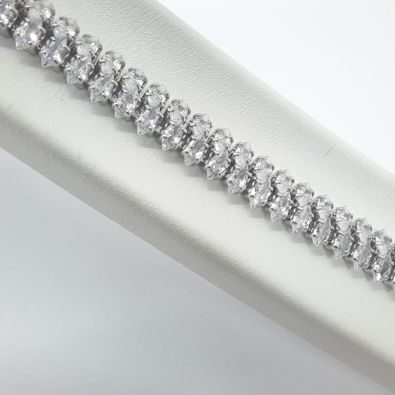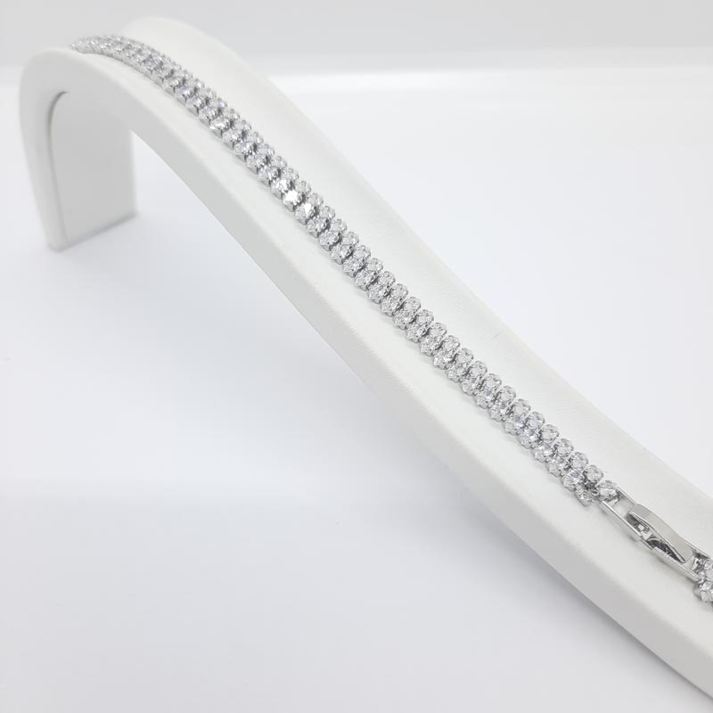 Χολυγουντιανή λάμψη στα χέρια σας! Βραχιόλι ασήμι με 2 σειρές εκτυφλωτικά λευκά ζιργκόν σε σχήμα ρόμβων, ιδανικό για επίσημες εμφανίσεις, κατάλληλο και για νύφη!