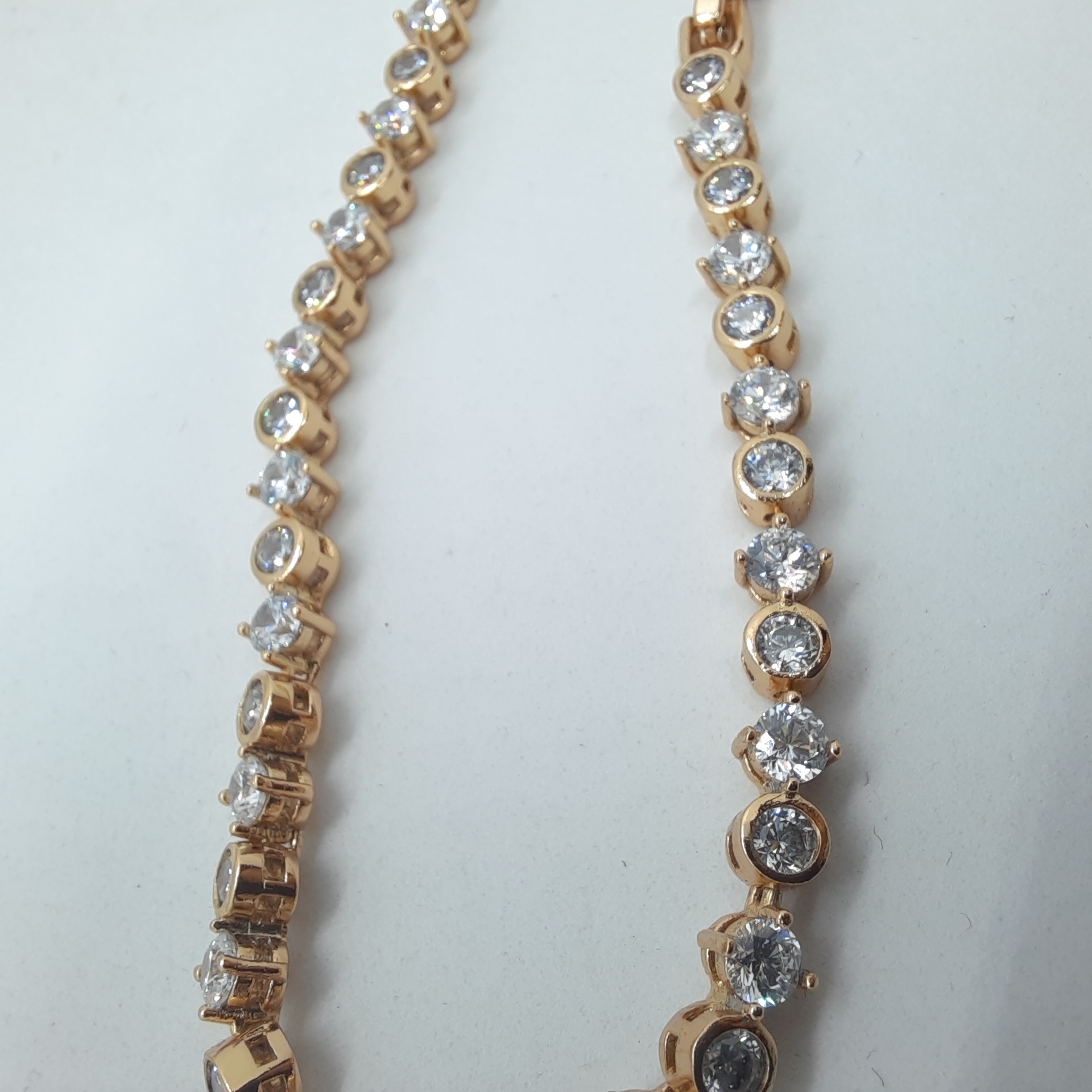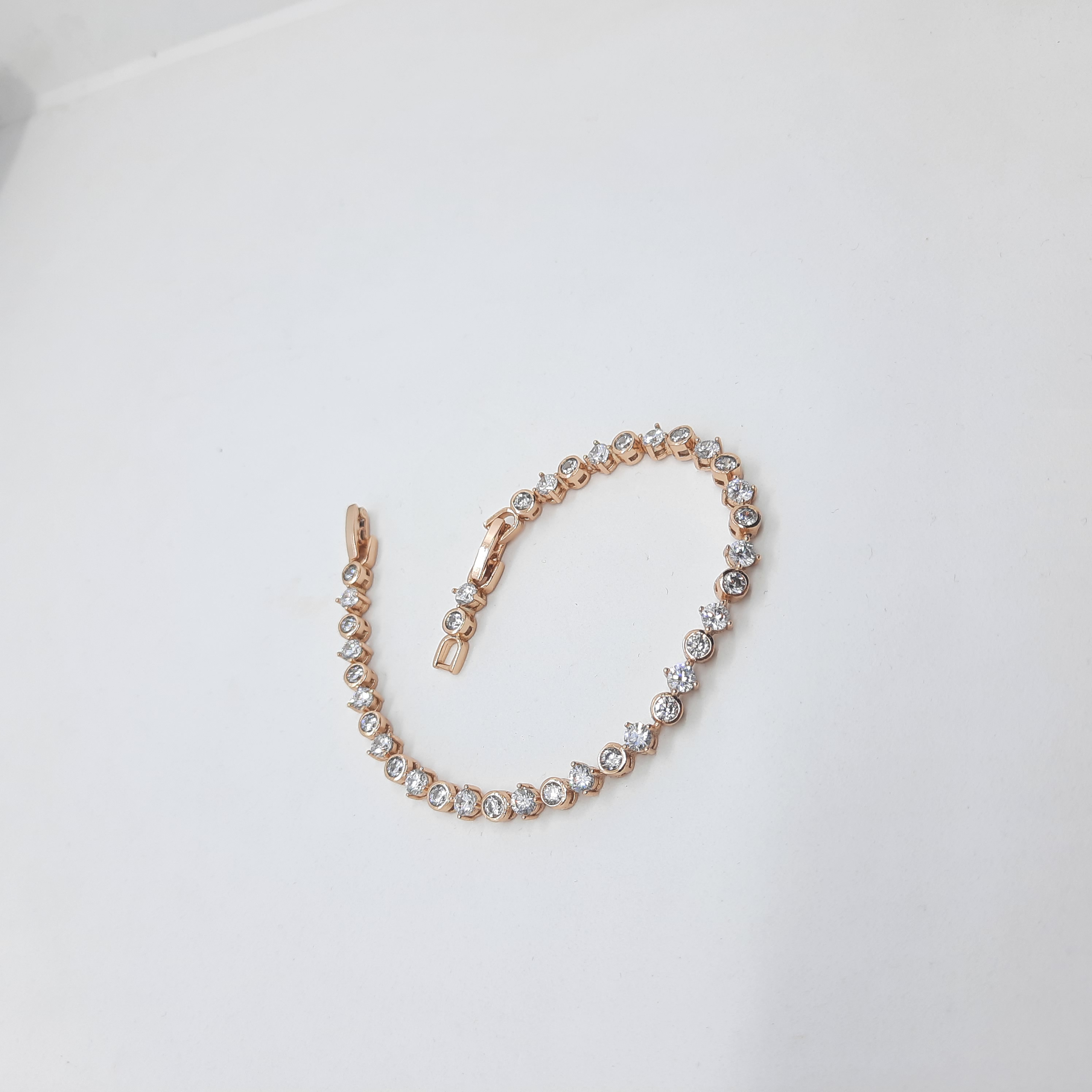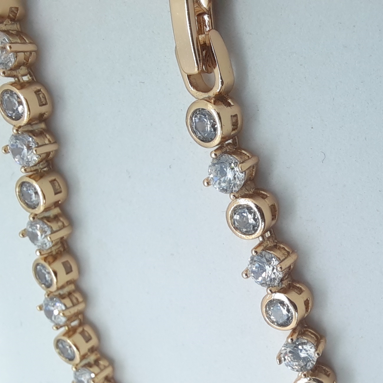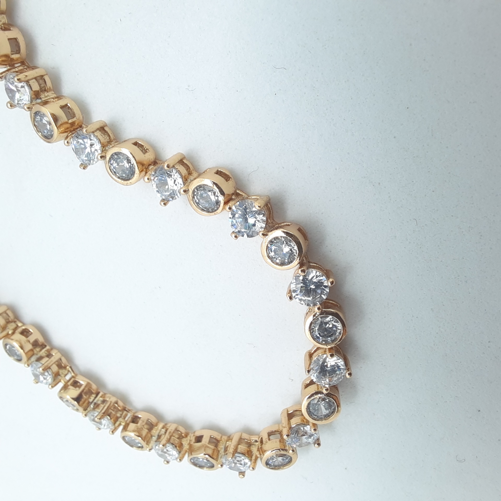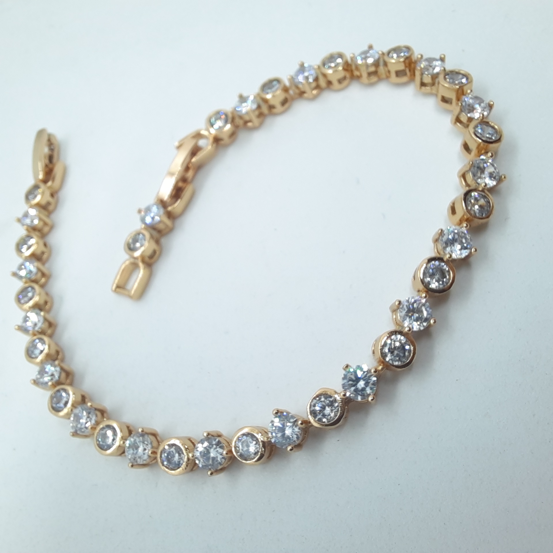 Πολυτελές και πολύτιμο βραχιόλι από ασήμι, επιχρυσωμένο με λευκές πέτρες ζιρκόν, καλοδουλεμένες λεπτομέρειες, συνοδεύει τις πολύ εντυπωσιακές βραδινές εμφανίσεις σας.