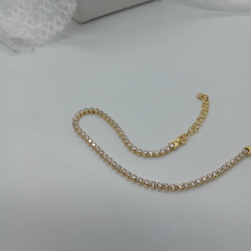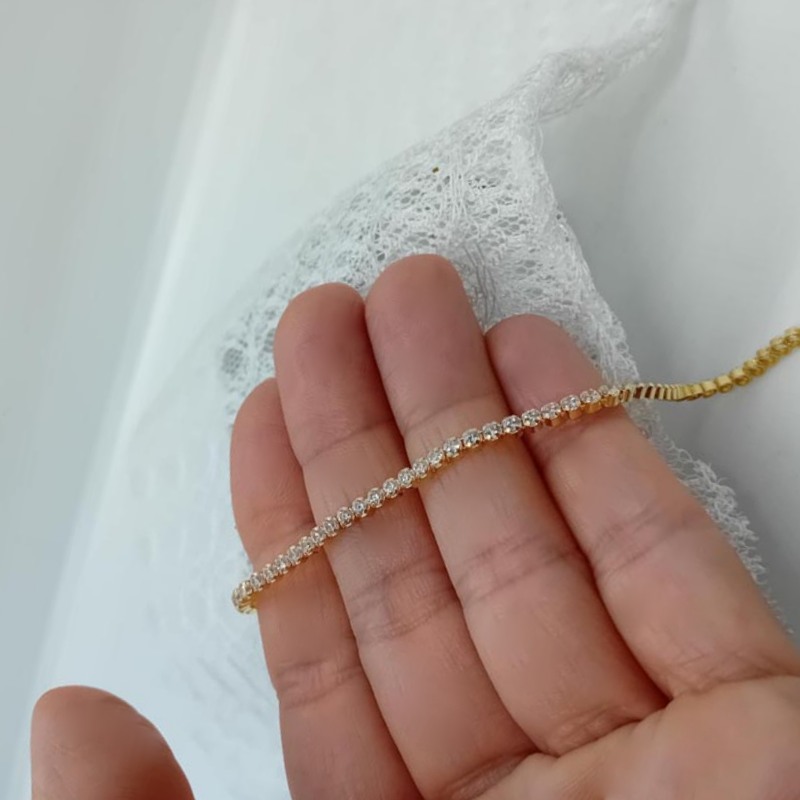 Μια εκτυφλωτική σειρά από λευκά ζιργκόν σε ένα κομψό βραχιόλι ριβιέρα, ιδανικό για επίσημες βραδινές εμφανίσεις.