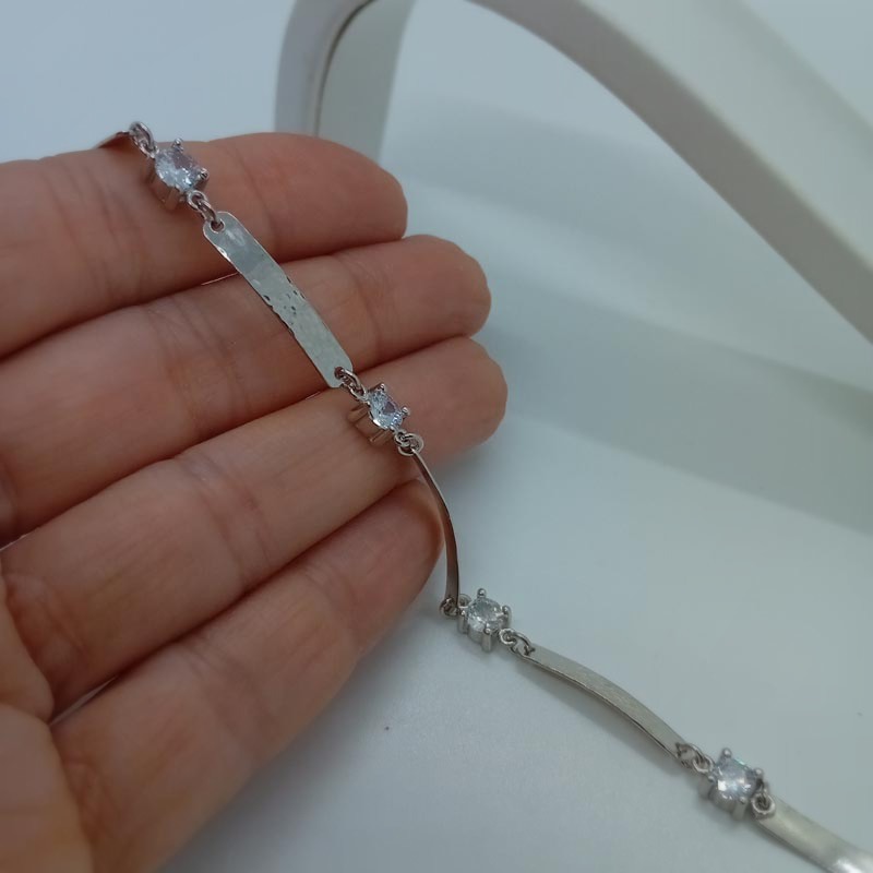 Για τις επίσημες εμφανίσεις σας πολύ εντυπωσιακό βραχιόλι από ΑΣΗΜΙ 925 που αποτελείται από 5 σφυρήλατες βέργες οι οποίες συνοδεύονται από 5 ευδιάκριτα λευκά ζιργκόν.