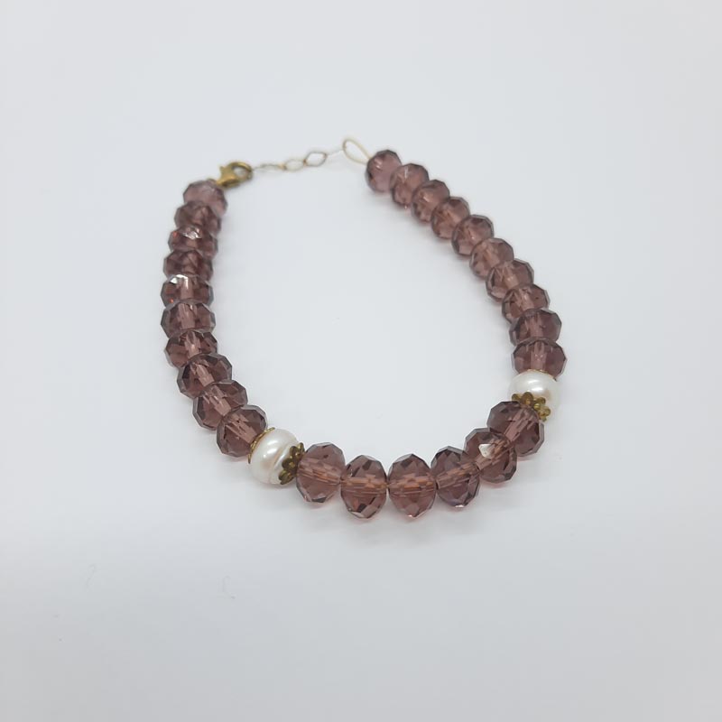 Φω βραχιόλι σε καφετιά απόχρωση με ημιδιάφανες πέτρες που συνοδεύονται από δύο πέρλες, μια όμορφη επιλογή που θα αναδείξει τα καφετιά ρούχα και αξεσουάρ σας.