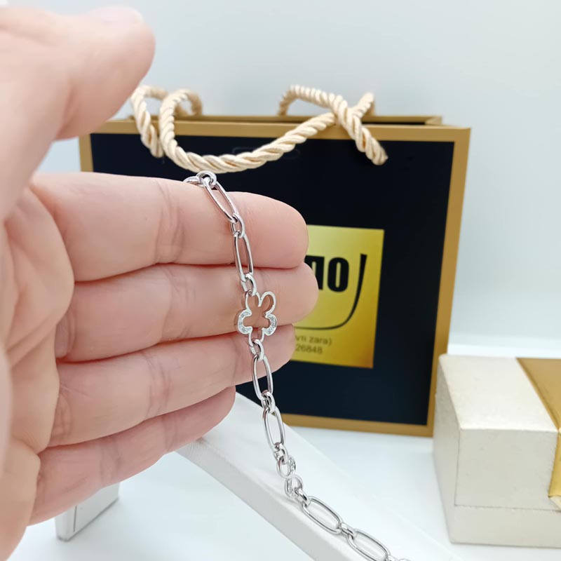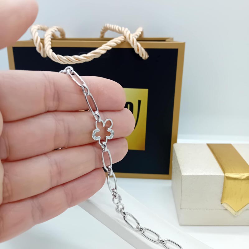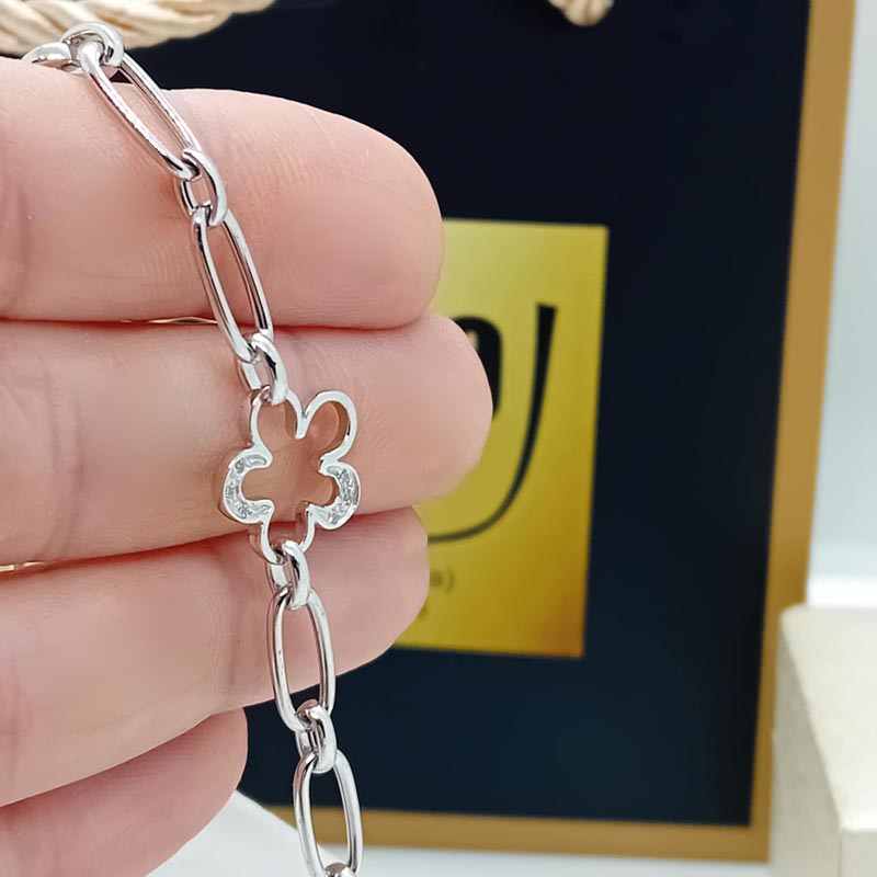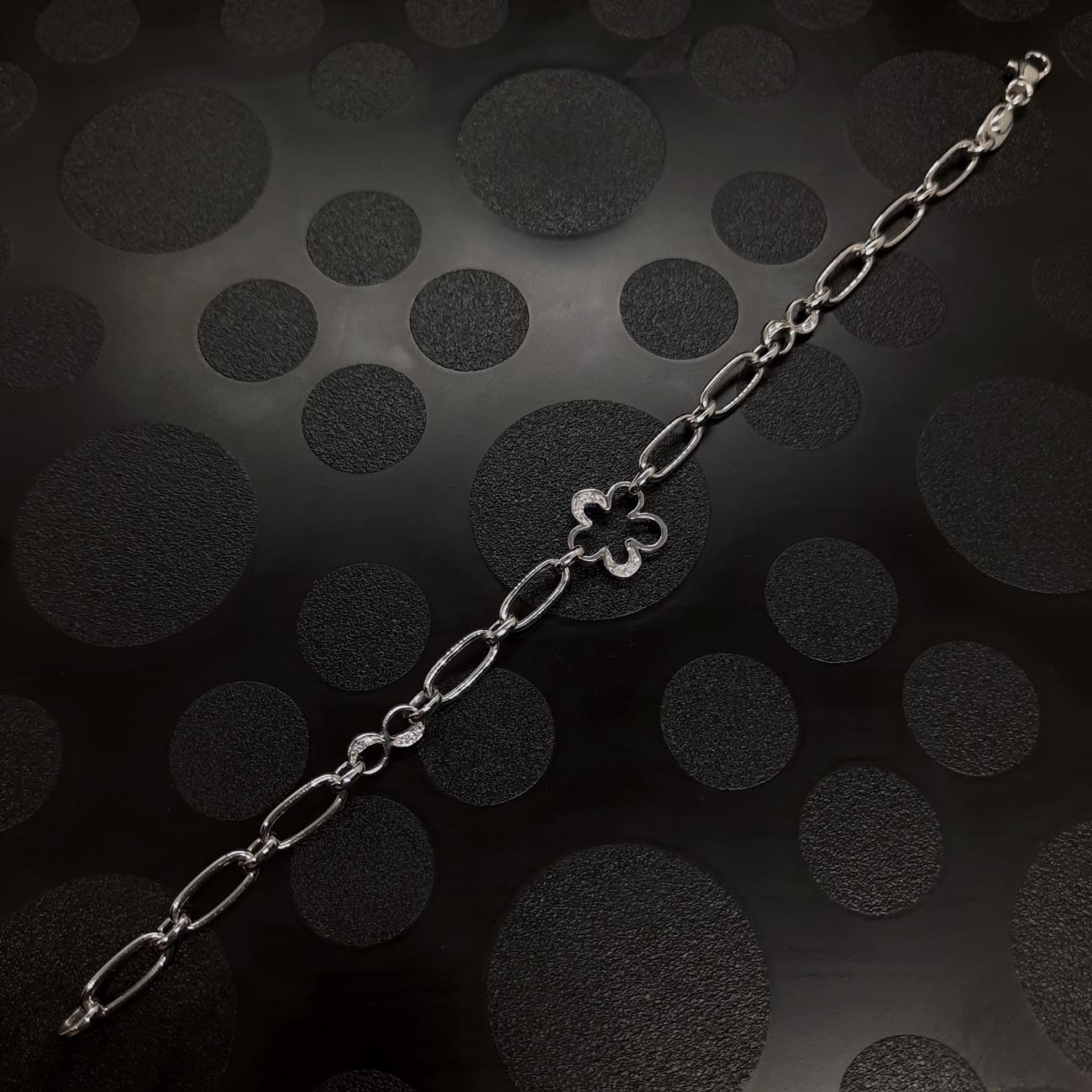 Βραχιόλι λευκόχρυσο αλυσίδα με άνθος Κ14