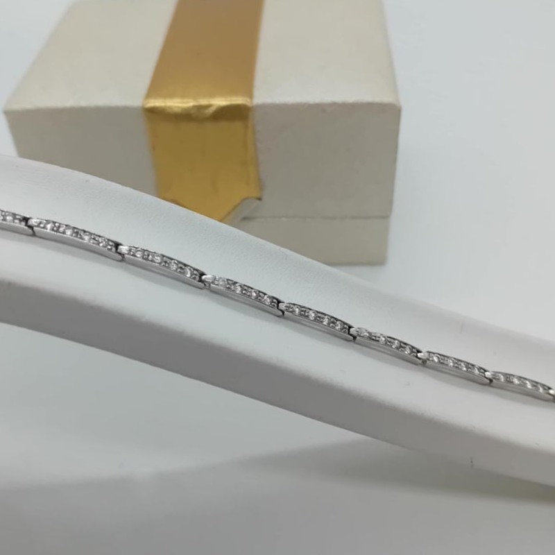 Ένα υπέροχο κόσμημα στα χέρια σας! Από λευκόχρυσο 14 καρατίων, με αφθονία λευκών ζιργκόν, διακριτικό, λεπτεπίλεπτο και φινετσάτο , ιδανικό δώρο για την αγαπημένη μας.