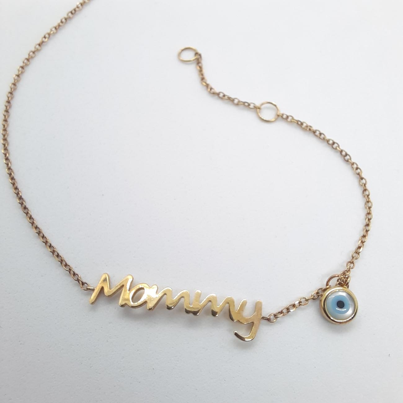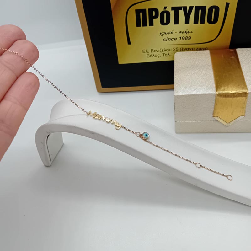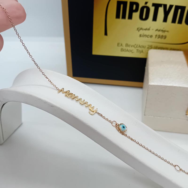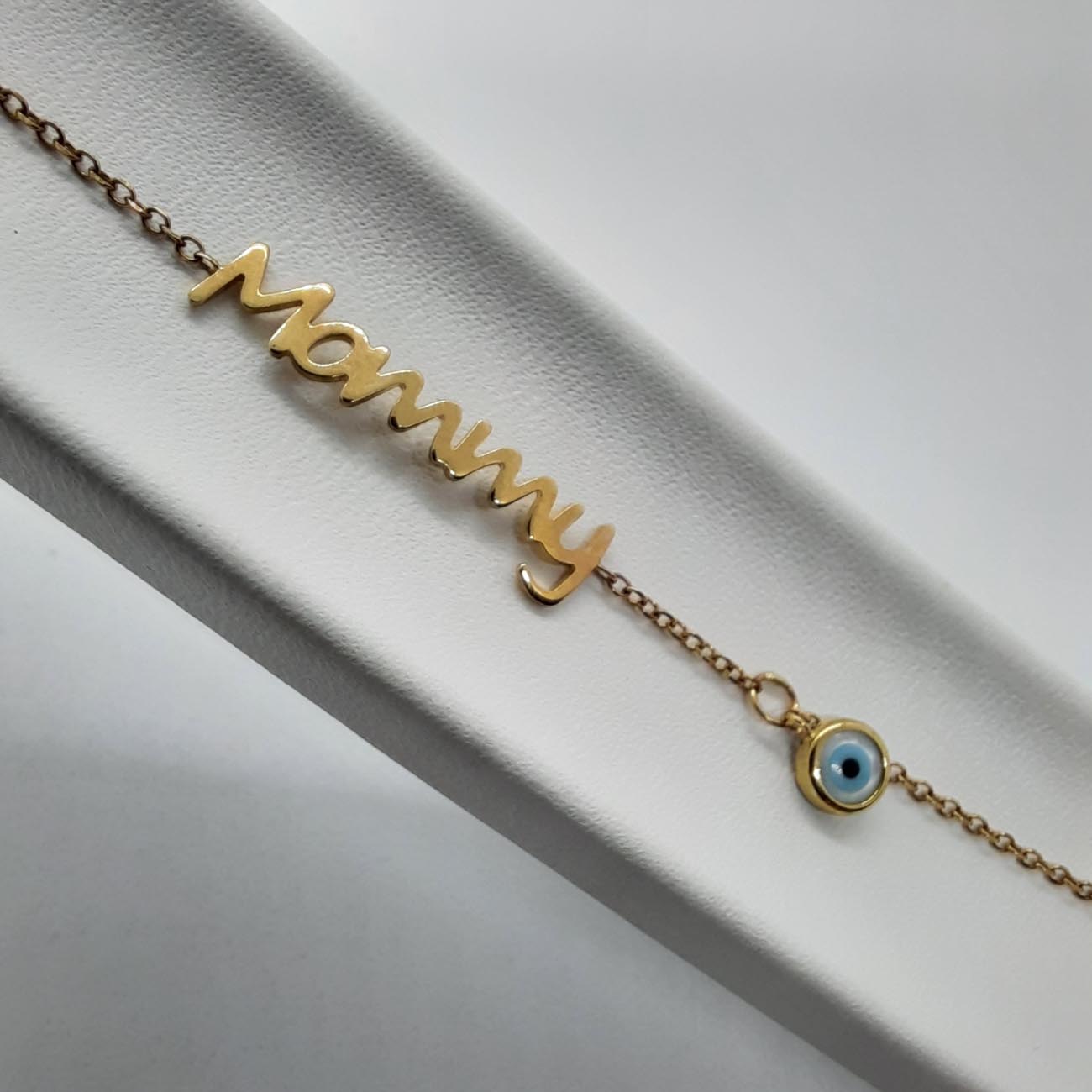 Για την γλυκιά μανούλα χρυσό βραχιόλι Κ9  με λέξη mommy και ματόχαντρο για προστασία από κάθε κακό.