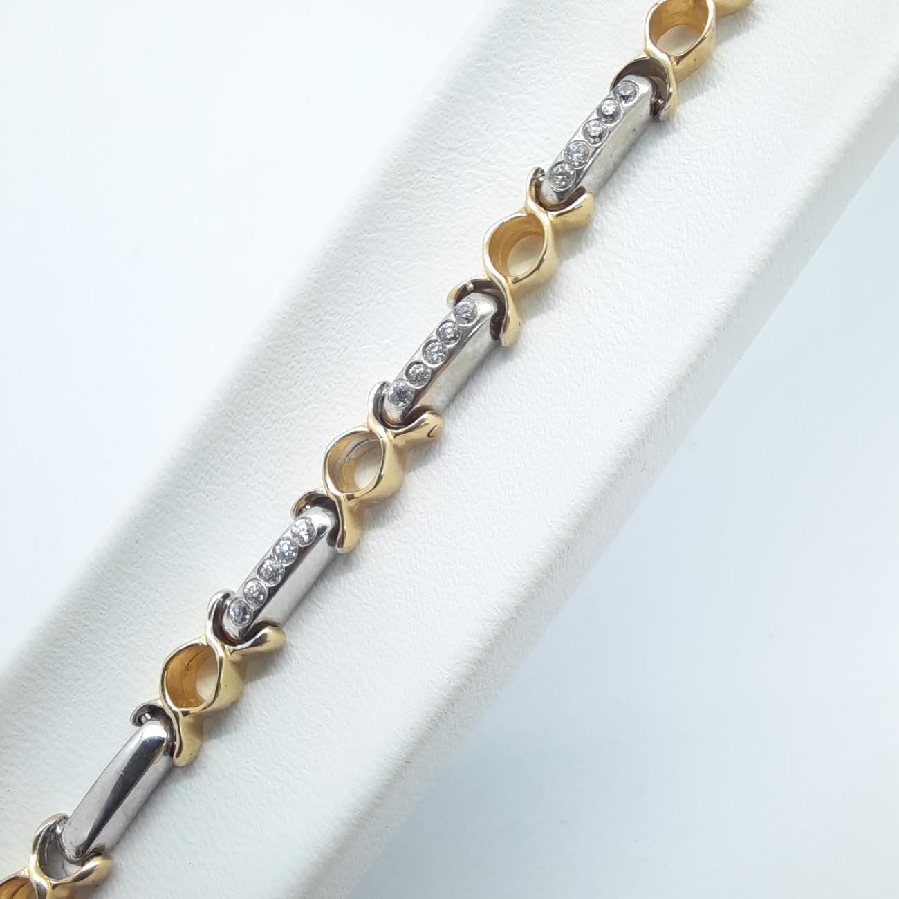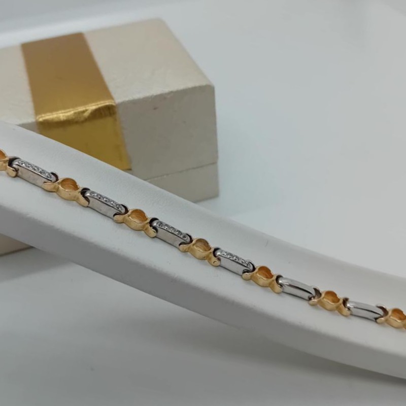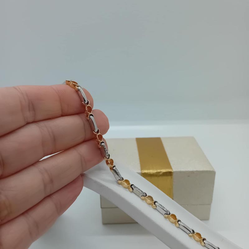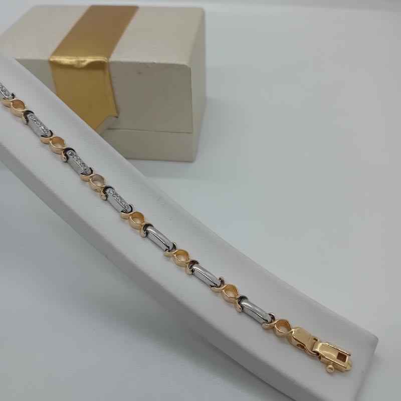 Χρυσό και λευκόχρυσο βραχιόλι 14 καρατίων με διακριτικά ζιργκόν , ένα μικρό κομψοτέχνημα , ένα πολύτιμο δώρο αγάπης.