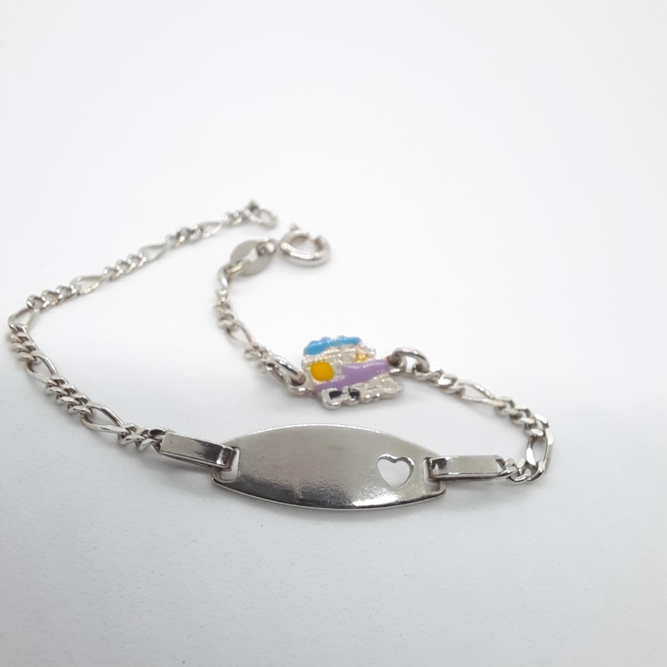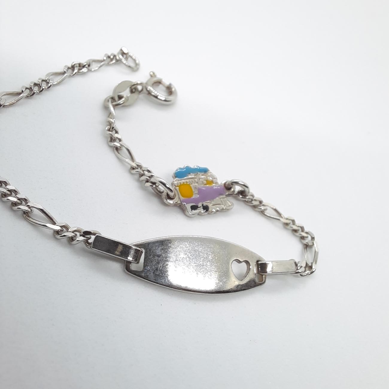 Ασημένια παιδική ταυτότητα για αγοράκι ή κοριτσάκι, από ασήμι 9.25 με διακριτική πλακέτα με διάτρητη καρδούλα, με δυνατότητα χάραξης του ονόματος/μονογράμματος, με ασημένιο χρωματιστό τρενάκι με σμάλτο, υπέροχη ιδέα για δώρο.