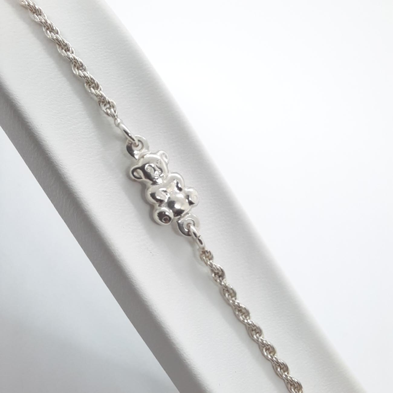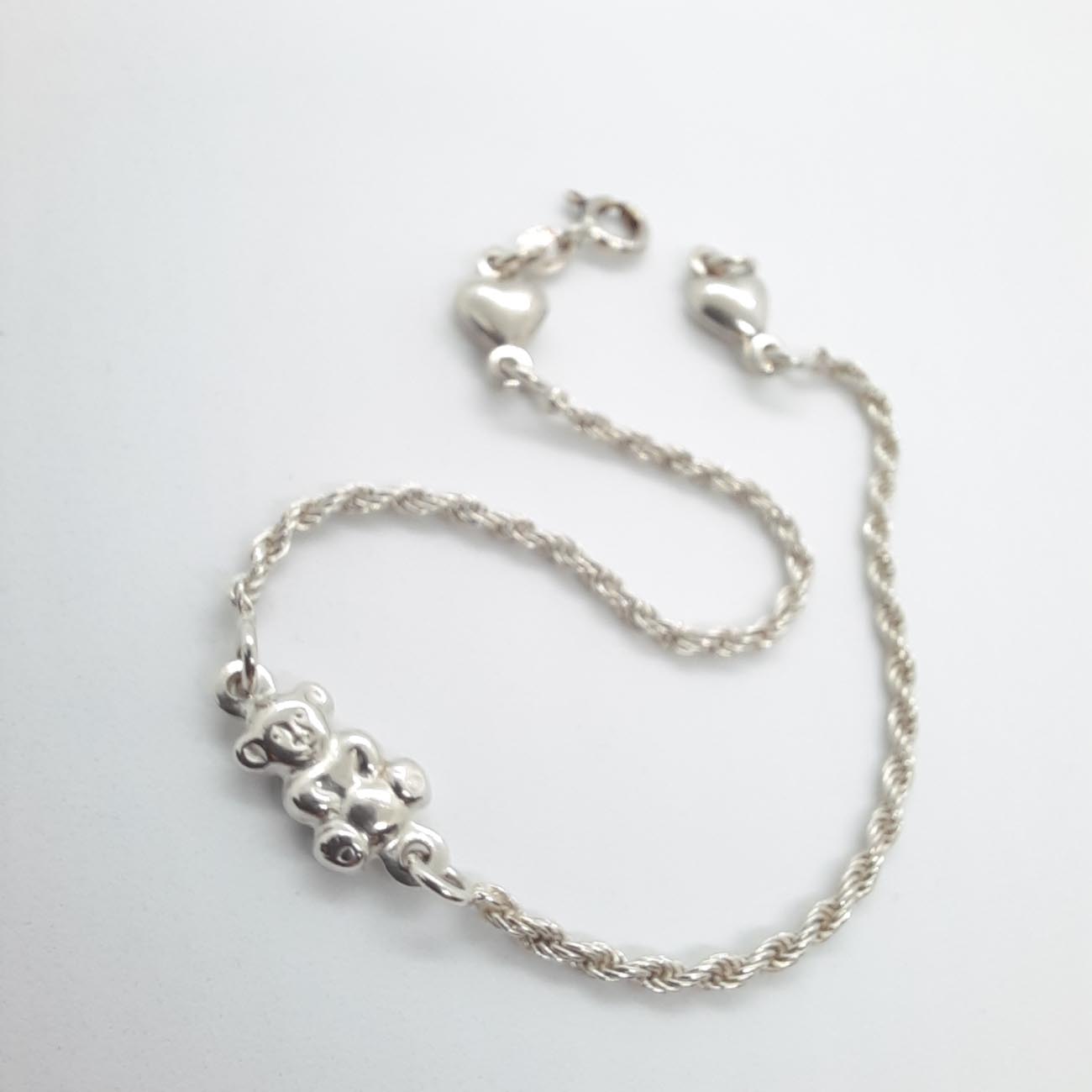 Ασημένιο βραχιόλι 9.25 με πολύ ιδιαίτερη πλέξη, αρκουδάκι και 2 καρδιές στις άκρες της.
