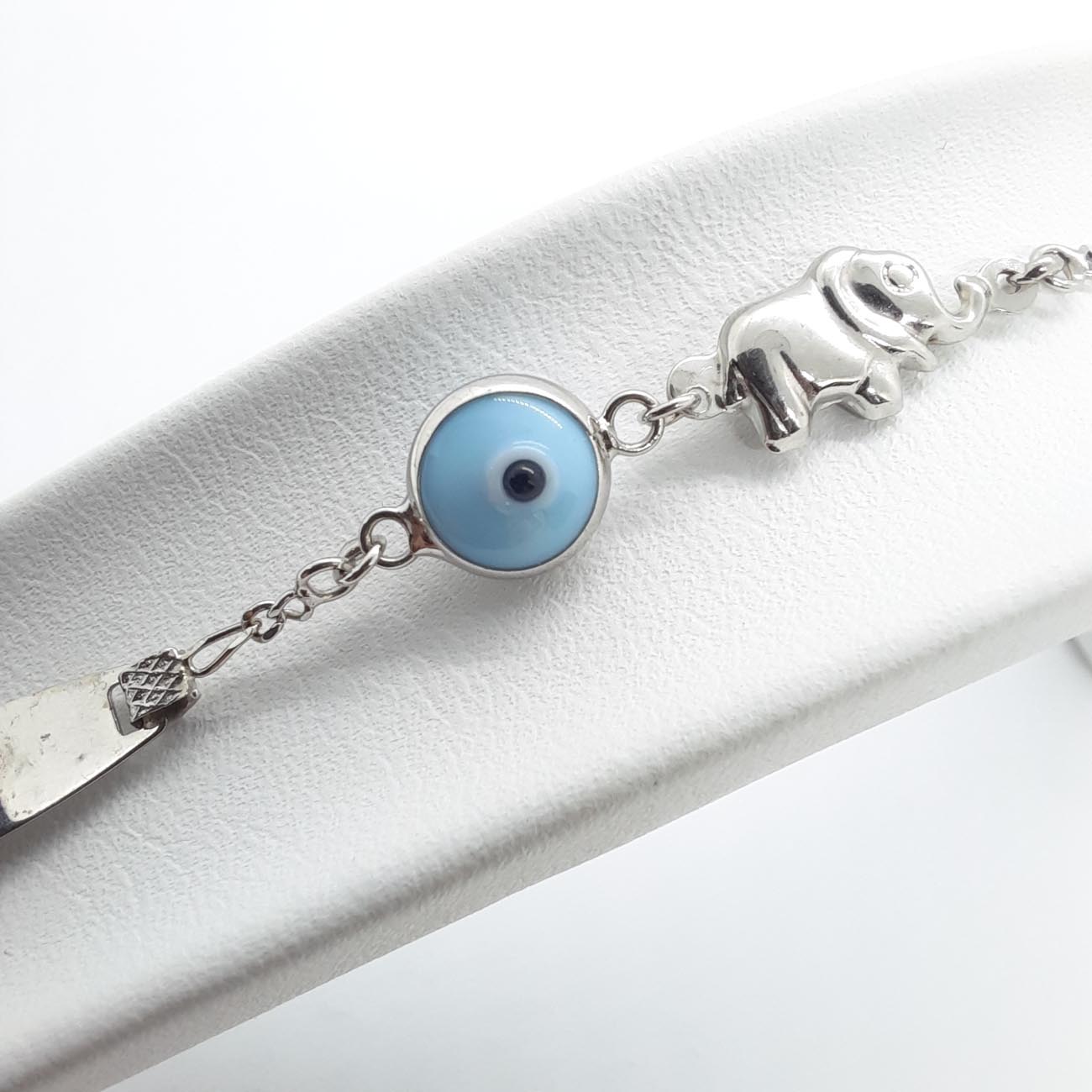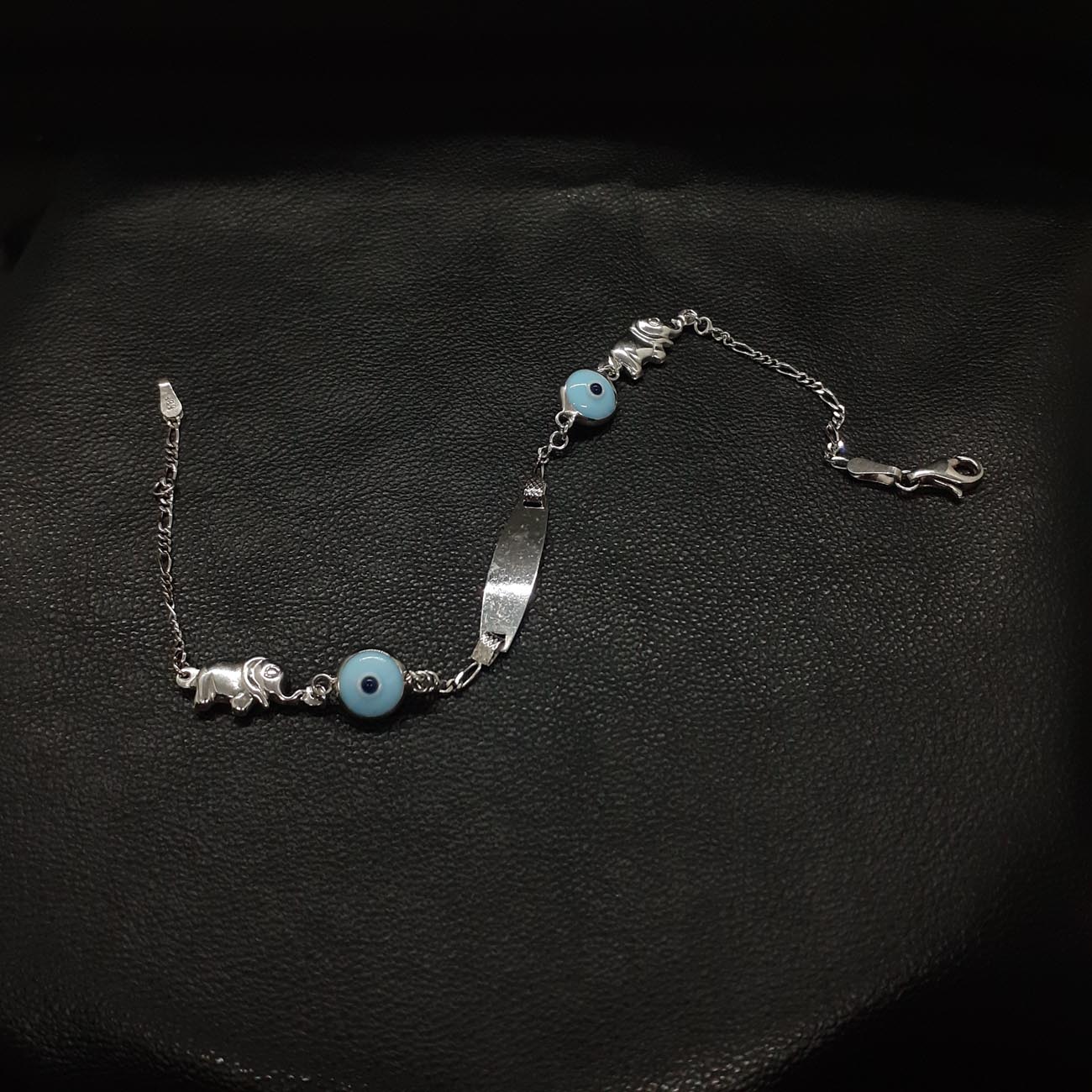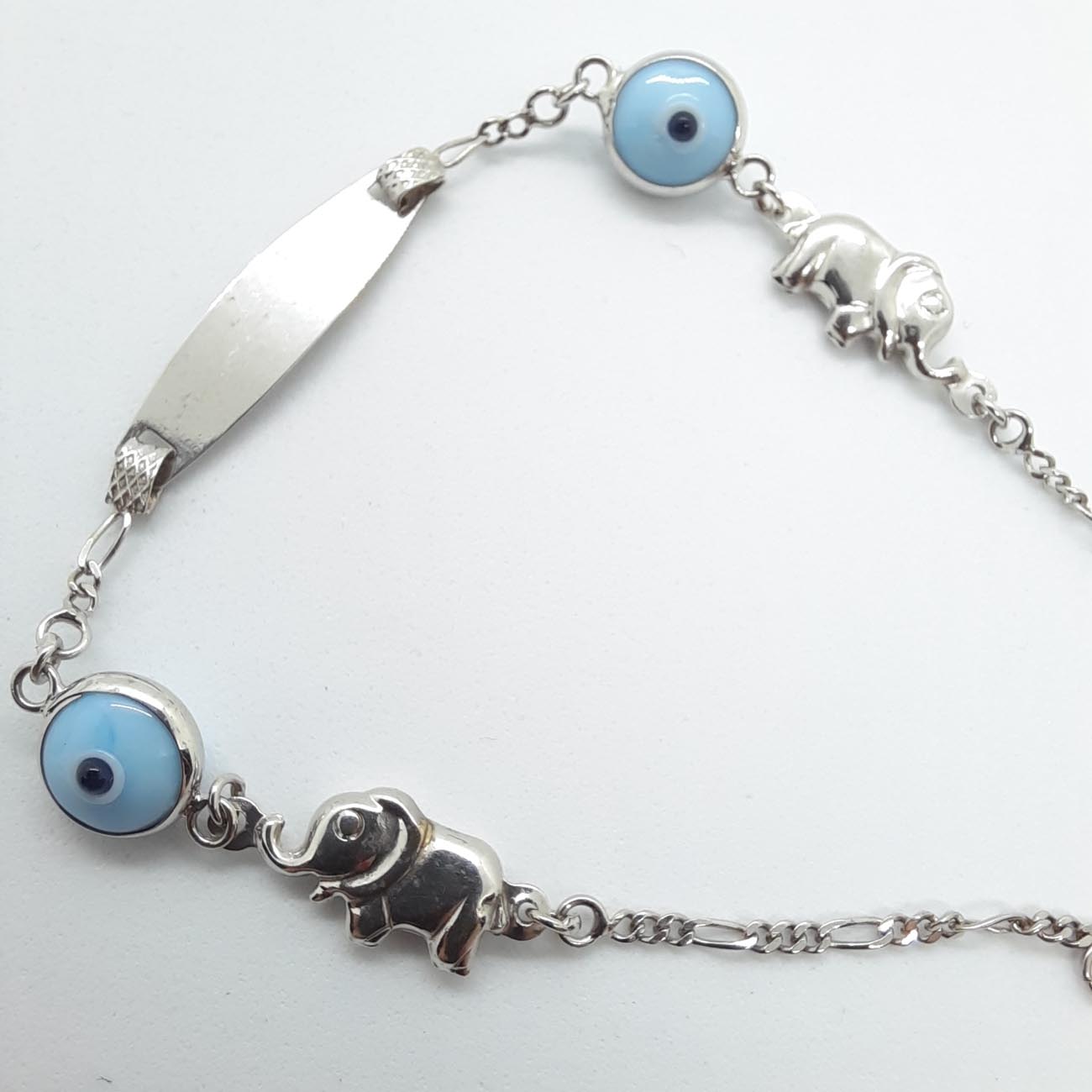 Πανέμορφη ταυτότητα για αγοράκι ,από λευκόχρυσο 14 καρατίων, με 2 τυχερά χαριτωμένα ελεφαντάκια και 2 μεγάλα ματόχαντρα, πολύτιμη όσο το μωρό σας!