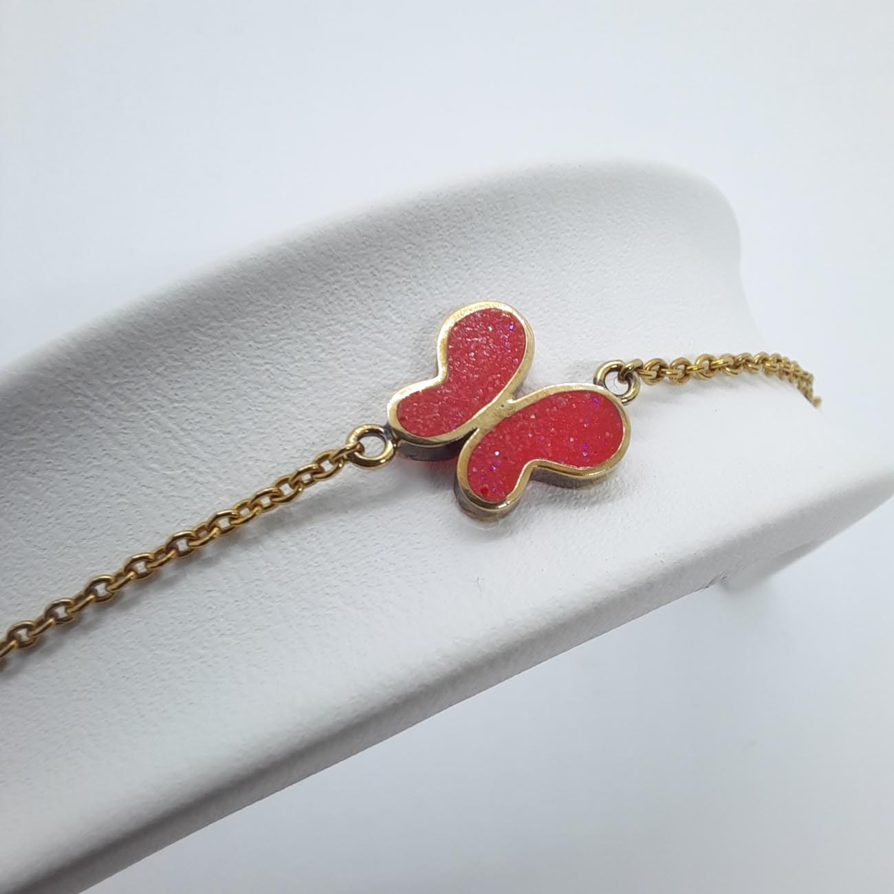 Χρυσό βραχιόλι με μοτίφ πεταλούδα κόκκινη, 14 καράτια, ένα υπέροχο διαχρονικό κόσμημα.