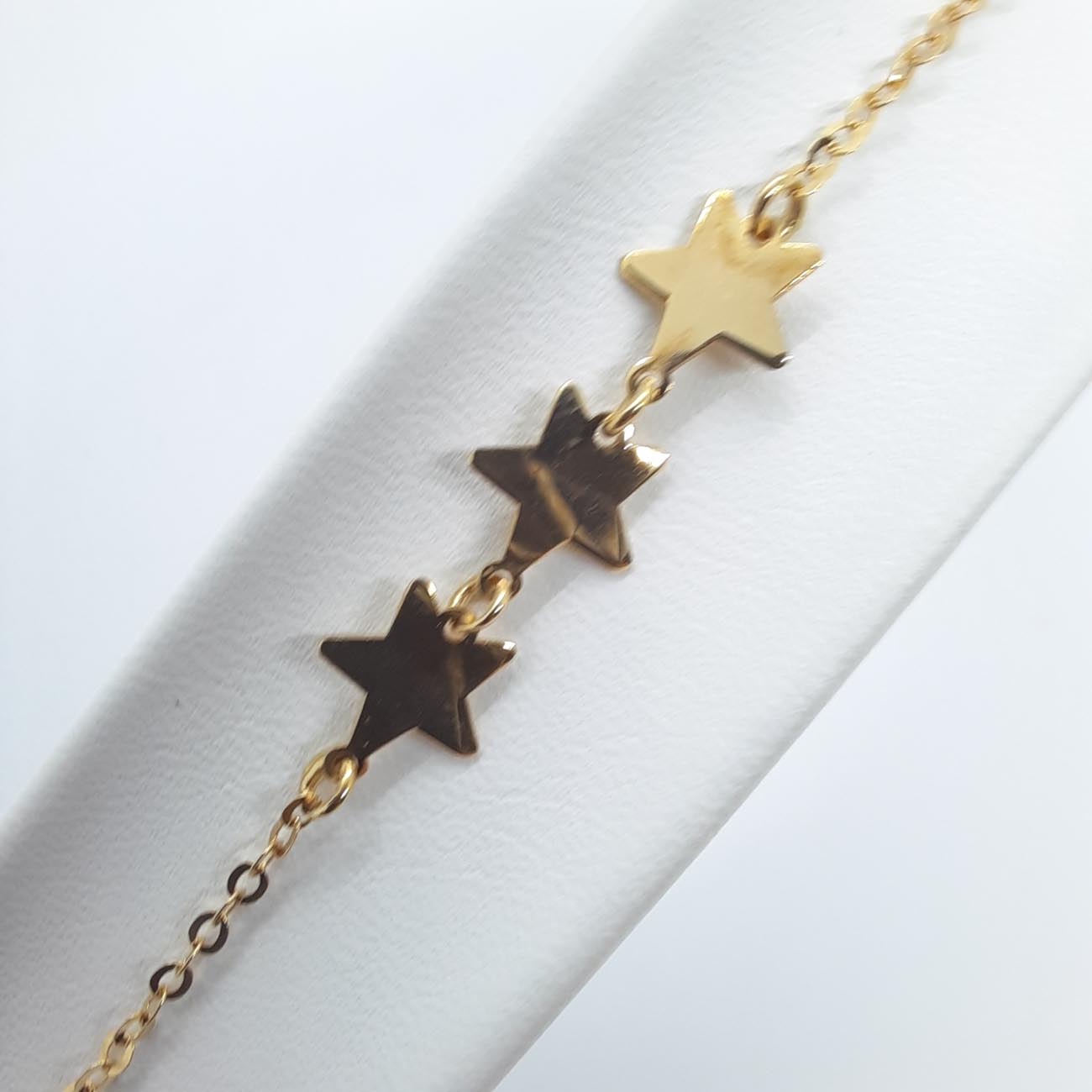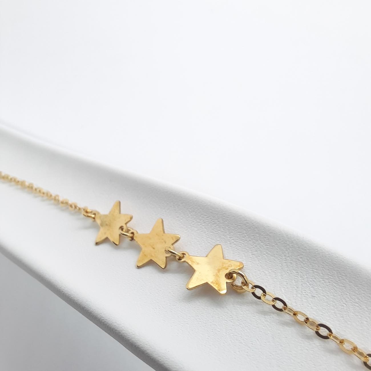 Τρία χαριτωμένα αστέρια φωτίζουν το χρυσό αυτό βραχιόλι 9 καρατίων, μοντέρνο κόσμημα για πολύτιμο πρόσωπο!
