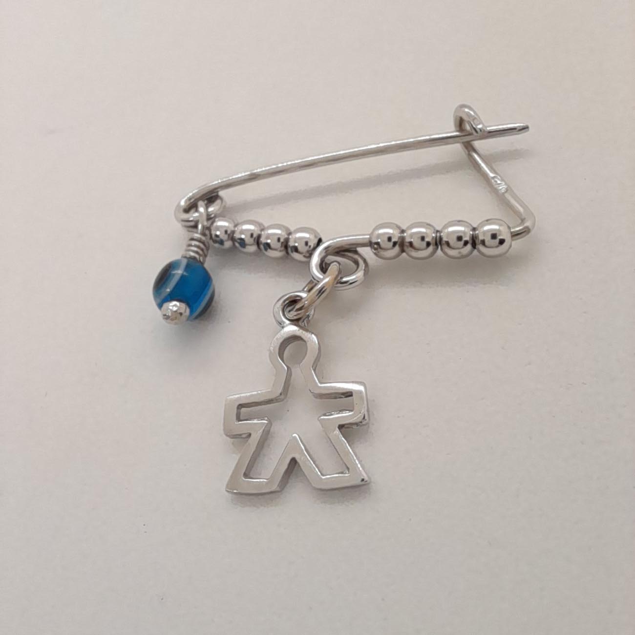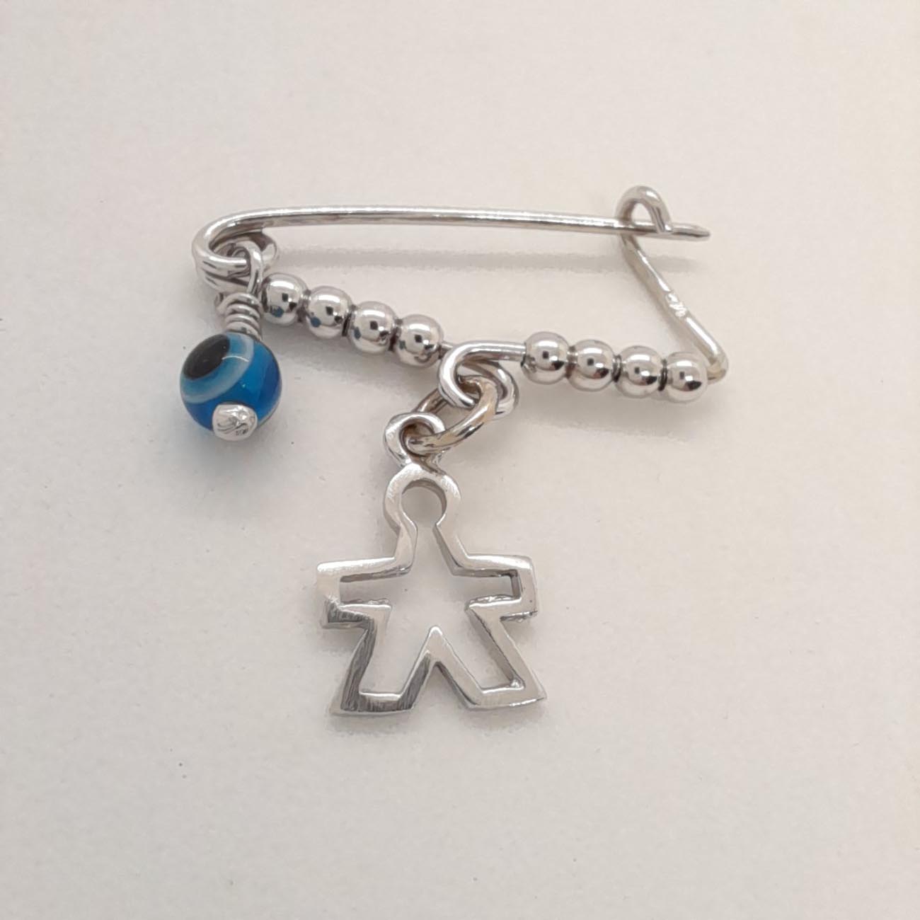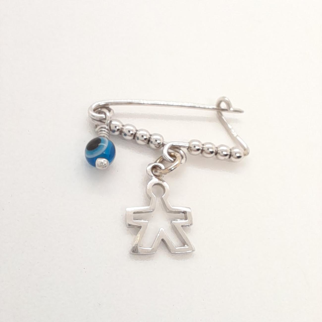 Όμορφο φυλαχτό με φιγούρα από αγοράκι και μπλε χάντρα για το κακό μάτι από ασήμι 9.25.