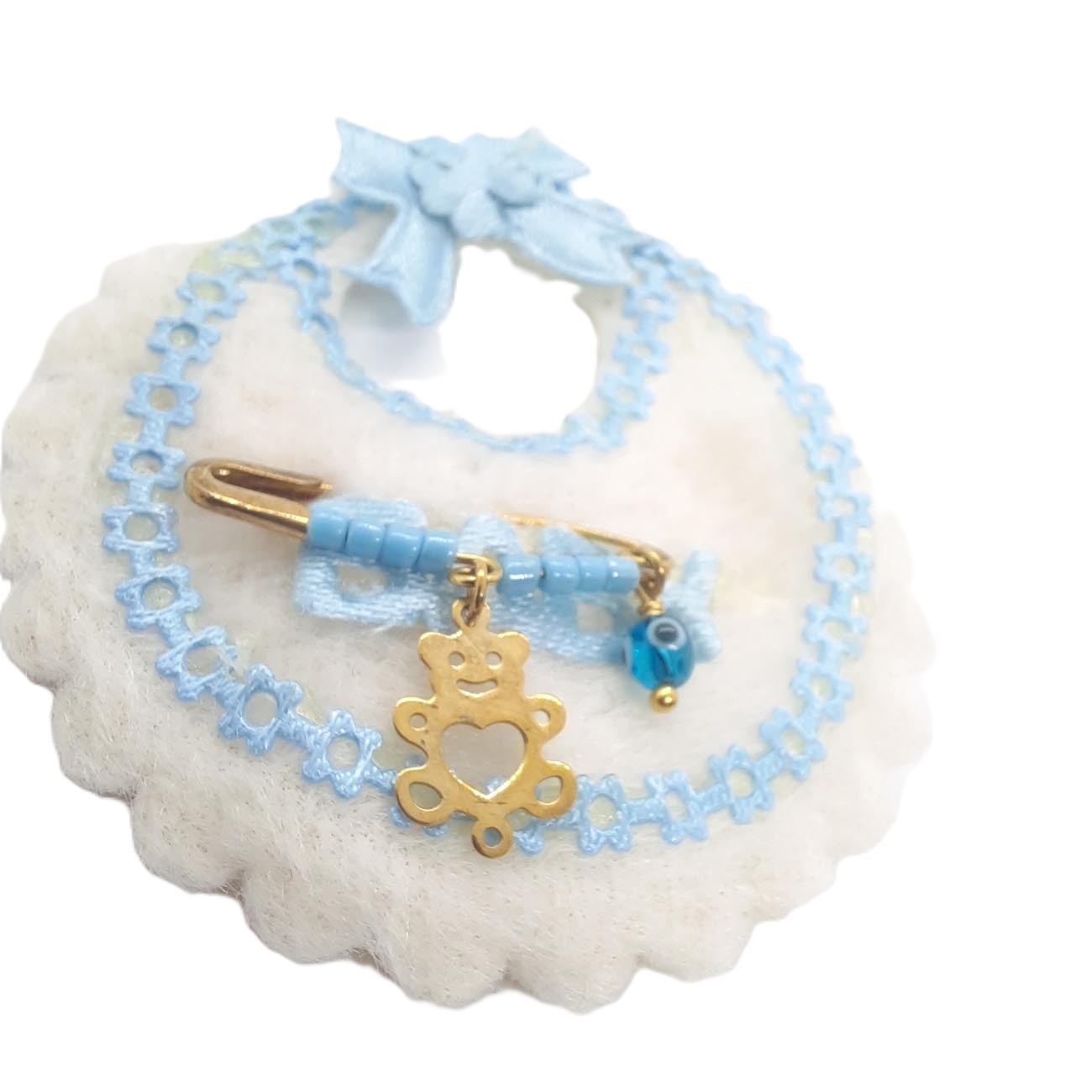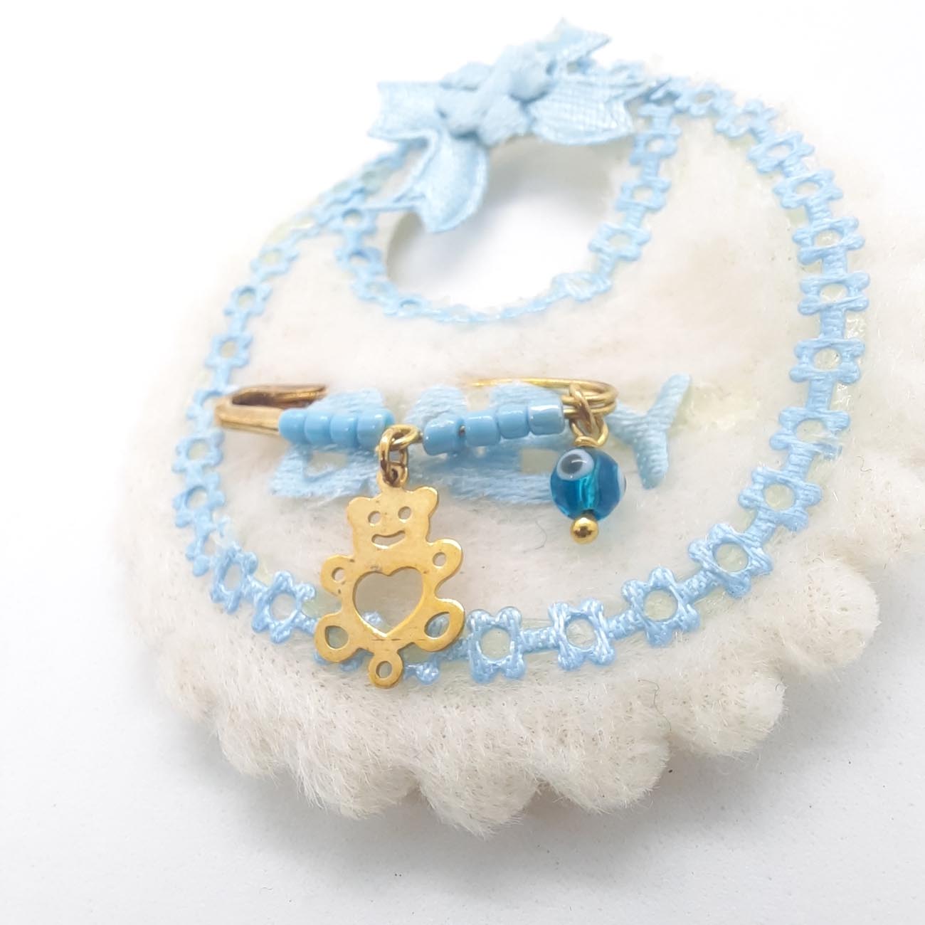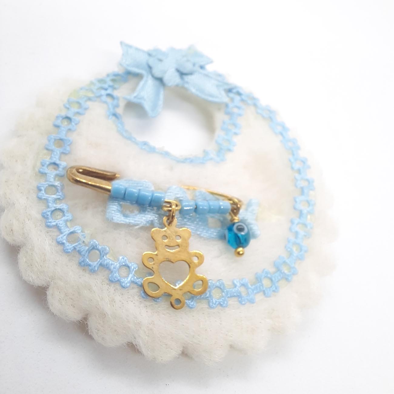 Χαριτωμένο χρυσό αρκουδάκι από χρυσό με ματάκι και γαλάζιες χαντρούλες, το πιο τέλειο δωράκι για το νεογέννητο μωράκι μας!ΥΨΟΣ: 15.3 mm