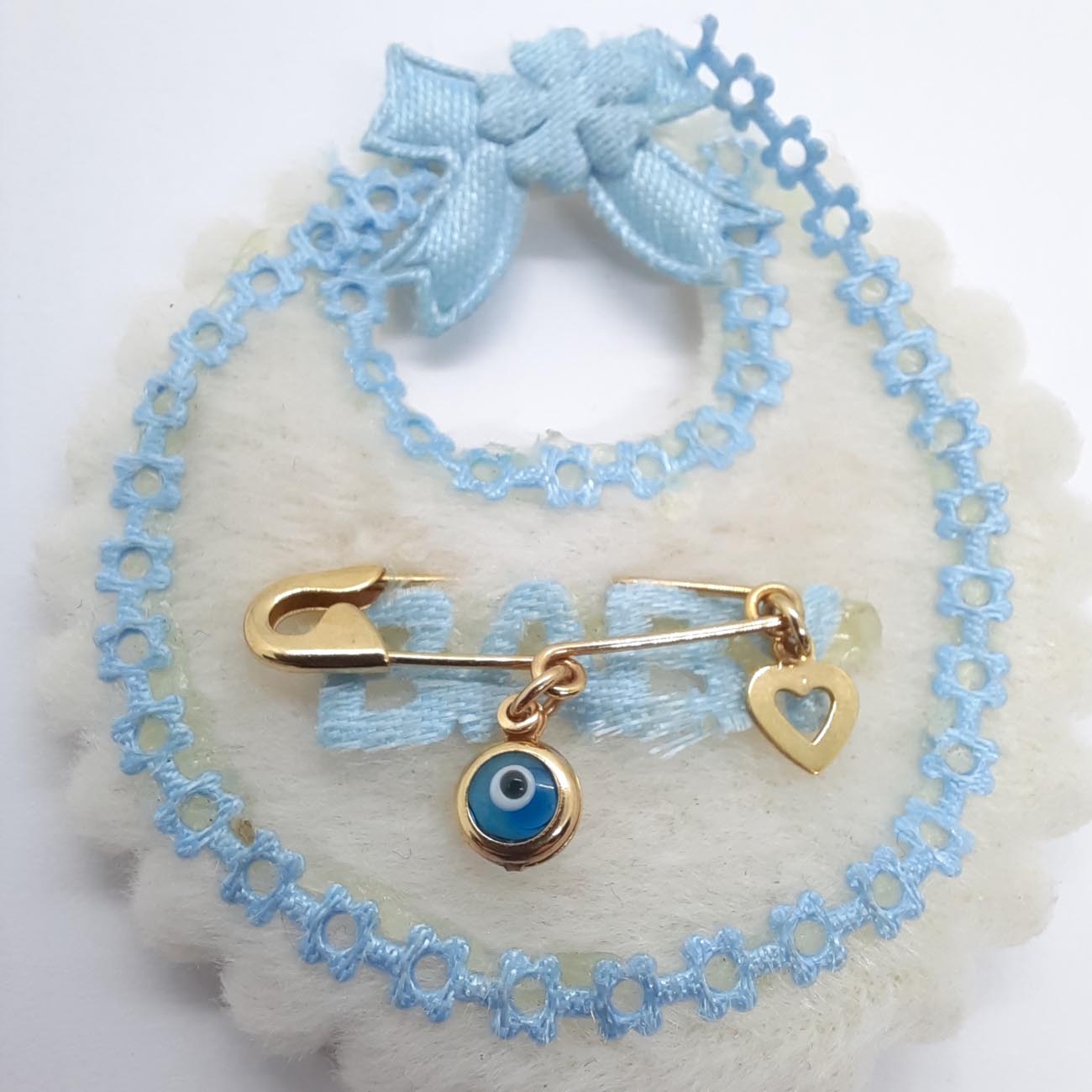 Πόσο όμορφο και μοντέρνο χρυσό Κ9 φυλακτό για το νεογέννητο! Με ματόχαντρο και καρδούλα , ένα πολύτιμο δώρο αγάπης !