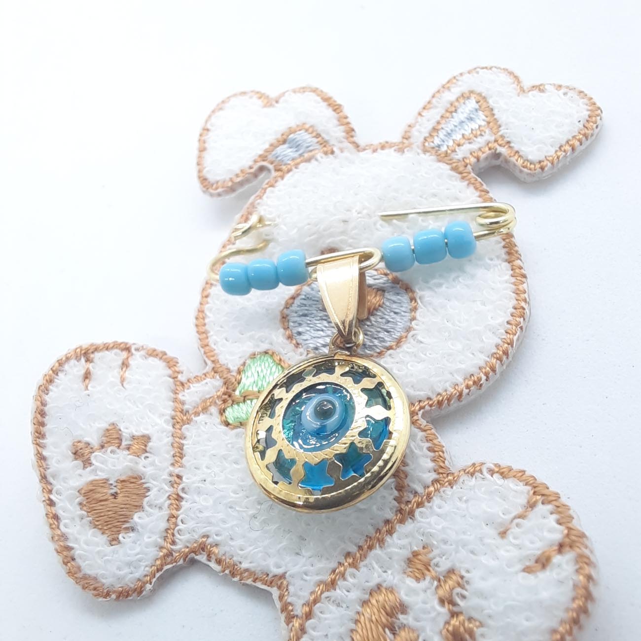 Πολυτελές πανέμορφο ματόχαντρο 14 καράτια σε χρυσή παραμάνα, περίτεχνο σχέδιο με αστεράκια διάτρητα, ιδανικό για δώρο σε νεογέννητο μωράκι που θα αξιοποιηθεί στην ενήλικη ζωή του ως όμορφο μενταγιόν. ΒΑΡΟΣ 1,6gr