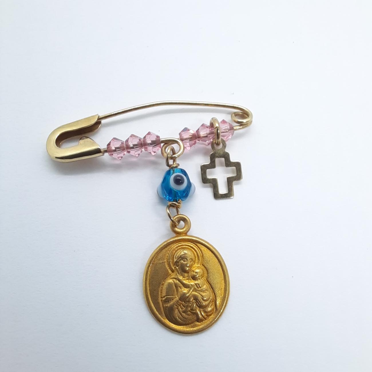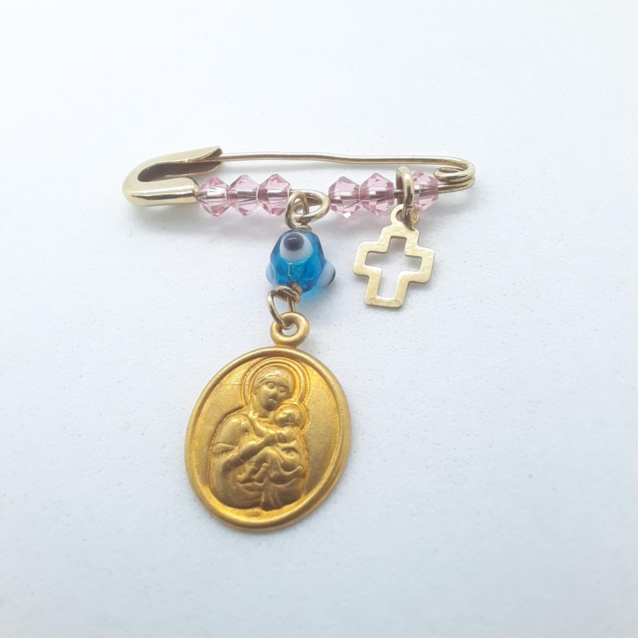 Προστατέψτε το νεογέννητο κοριτσάκι σας με εικόνα Παναγίας με Χριστούλη στην αγκαλιά της φυλακτό ματόχαντρο με σταυρουδάκι Κ9.ΒΑΡΟΣ 0.9