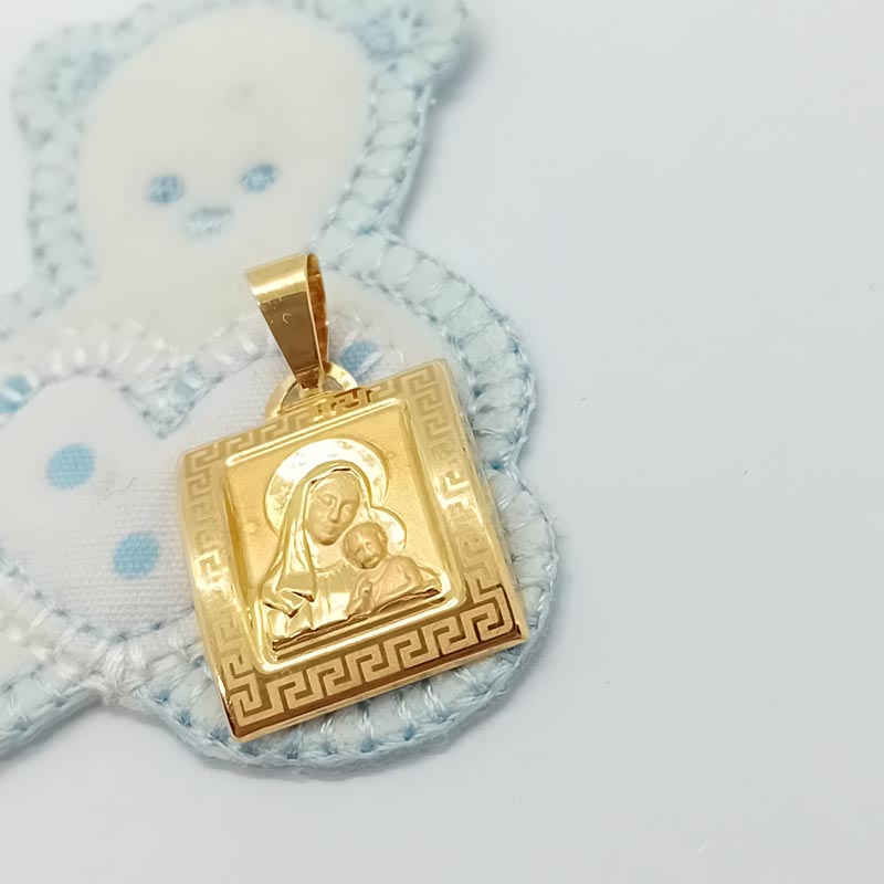Με αρχαιοελληνικό μαίανδρο στο περίγραμμα, μενταγιόν με Παναγίτσα γλυκύτατης μορφής αγκαλιά με τον Χριστούλη. Ολόχρυσο φυλαχτό 14 ΚΑΡΑΤΙΩΝ για τα πολύτιμα μωράκια μας, αλλά και για το ντεκολτέ μας αν συνδυαστεί με ανάλογη αλυσίδα! ( ΠΡΟΣΟΧΗ: το μενταγιόν διατίθεται μεμονωμένο και ΔΕΝ ΠΕΡΙΛΑΜΒΑΝΕΙ ΑΛΥΣΙΔΑ)
