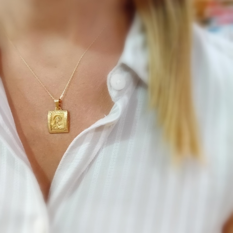 Χρυσό φυλαχτό Παναγίτσα με μαίανδρο 14 καράτια