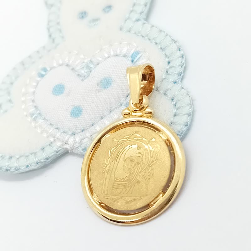 Στρογγυλό design εντυπωσιακό χρυσό φυλαχτό K14 Παναγίτσα για την κούνια του μπέμπη και της μπέμπας αλλά και για το ντεκολτέ σας ! Ομορφιά, ευλογία και προστασία από κάθε βασκανία και ασθένεια.
