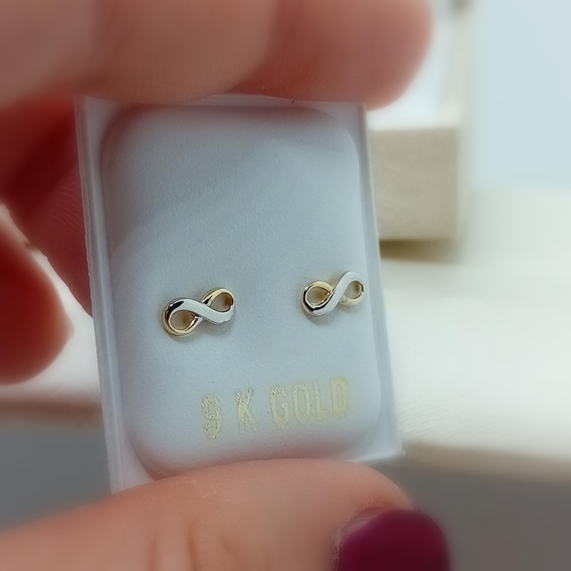 Όμορφα παιδικά - νεανικά σκουλαρίκια, δίχρωμα, design "ΑΠΕΙΡΟ" από χρυσό 9 καρατίων.
