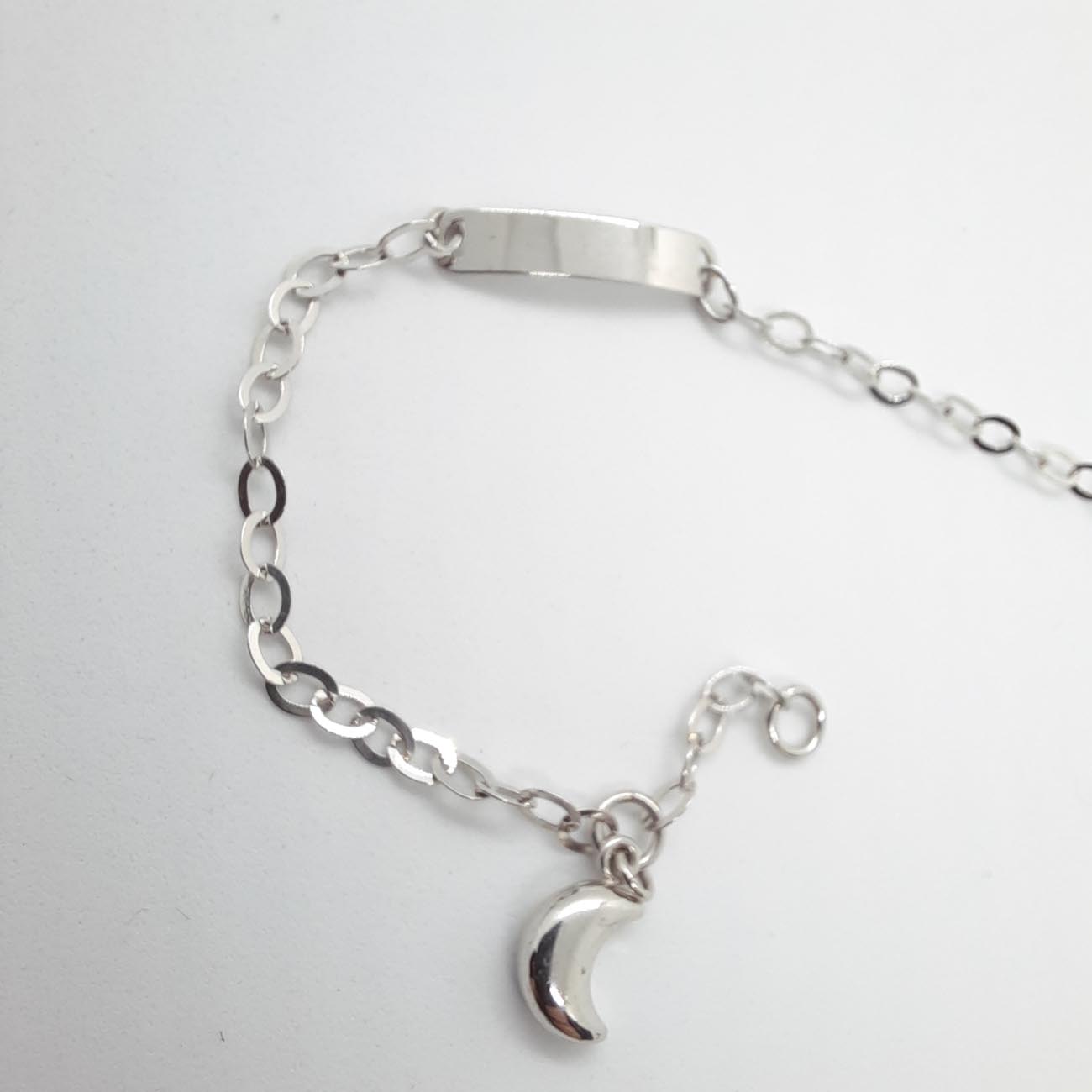 Πανέμορφη ταυτότητα για αγοράκι ή κοριτσάκι από λευκόχρυσο 14 καρατίων, με φεγγαράκι στην αλυσίδα της, λιτή και πολύτιμη, ένα δώρο αξίας!