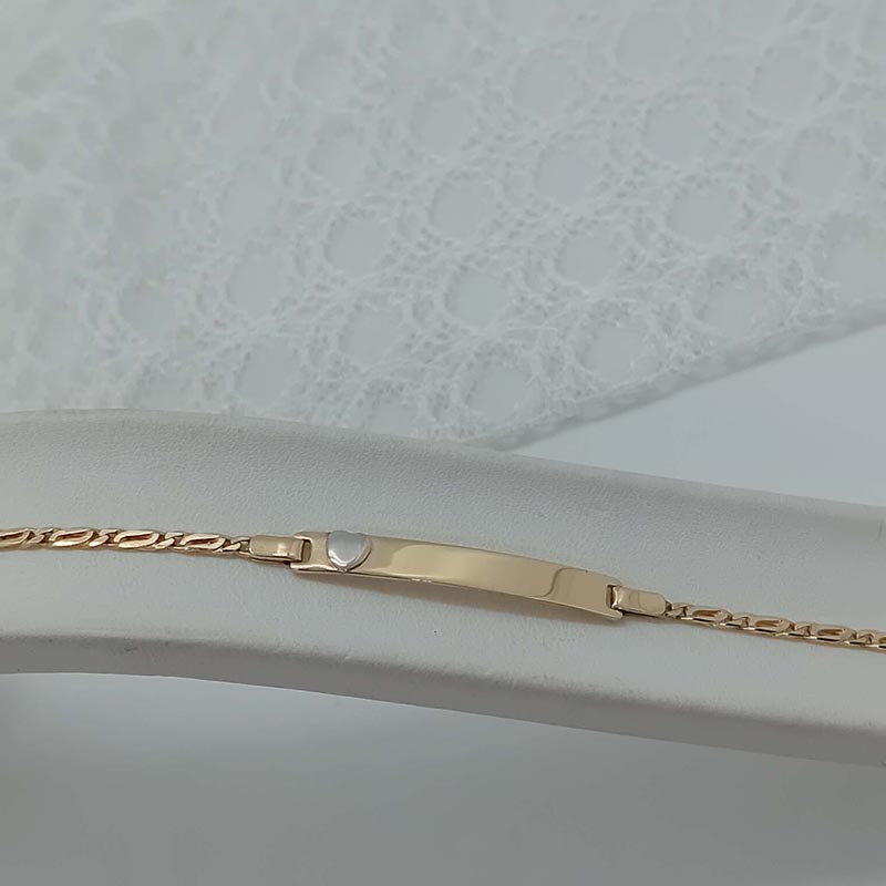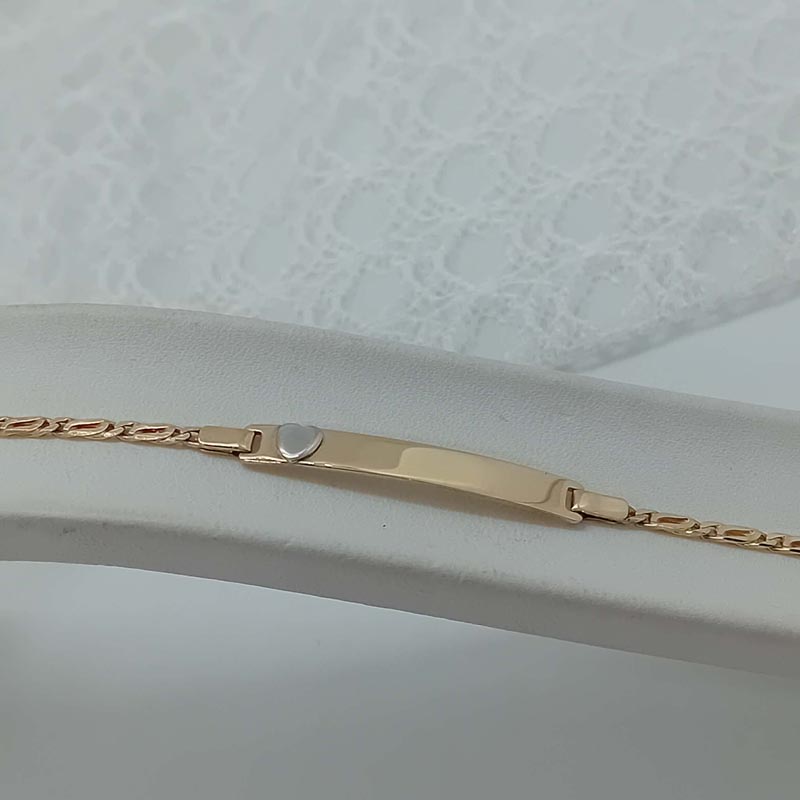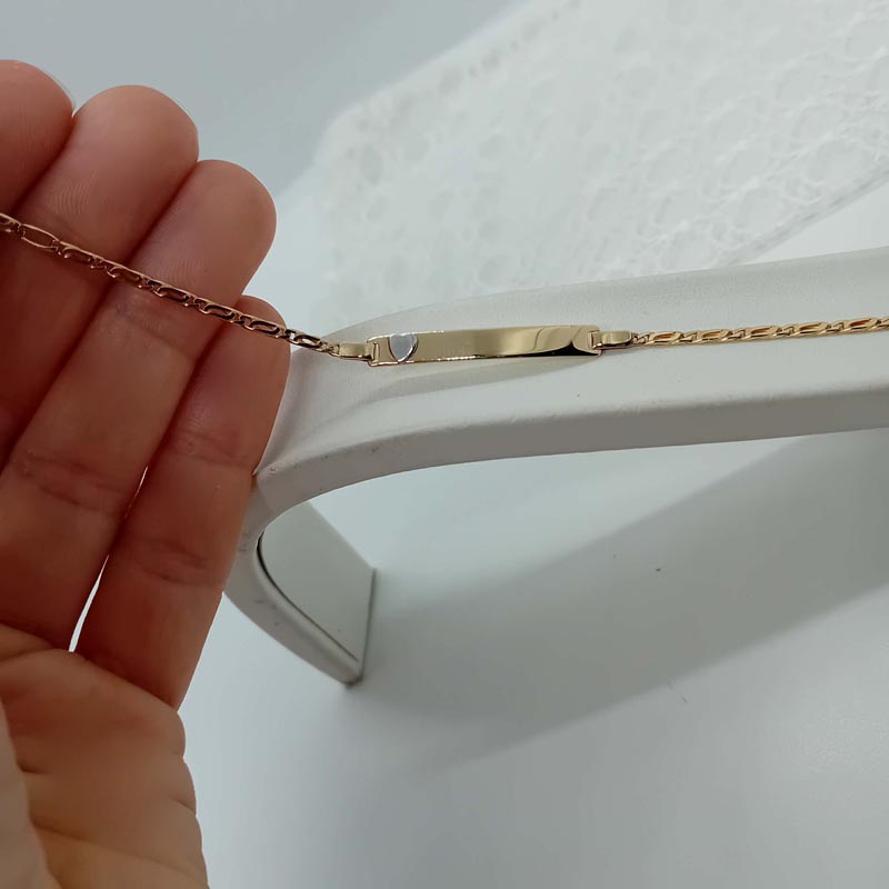 Για κοριτσάκι ιδανικό δώρο αξίας: ταυτότητα χρυσή 14 καρατίων, με όμρφη πλέξη στην αλυσίδα, με λουστρέ πλακέτα επάνω στην οποία υπάρχει λευκόχρυση ανάγλυφη καρδούλα.