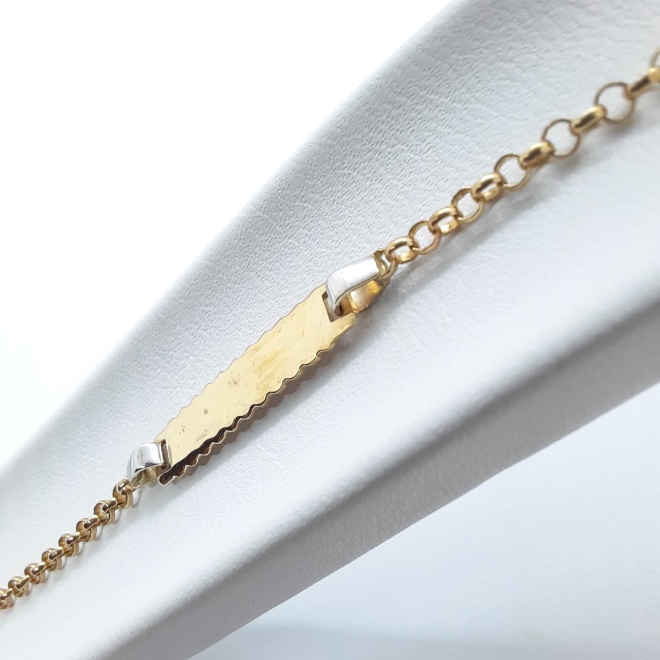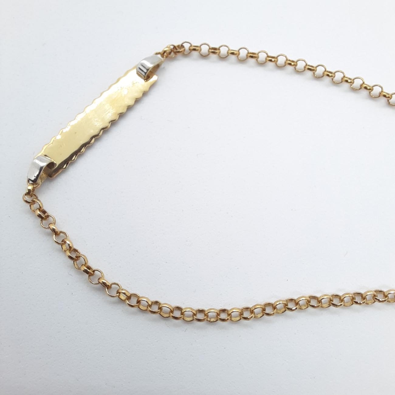 Πολύτιμη ταυτότητα για αγοράκι και κοριτσάκι από χρυσό 14 καρατίων, με κομψό περίγραμμα και πολύ όμορφη αλυσίδα με λευκόχρυη λεπτομέρεια.
