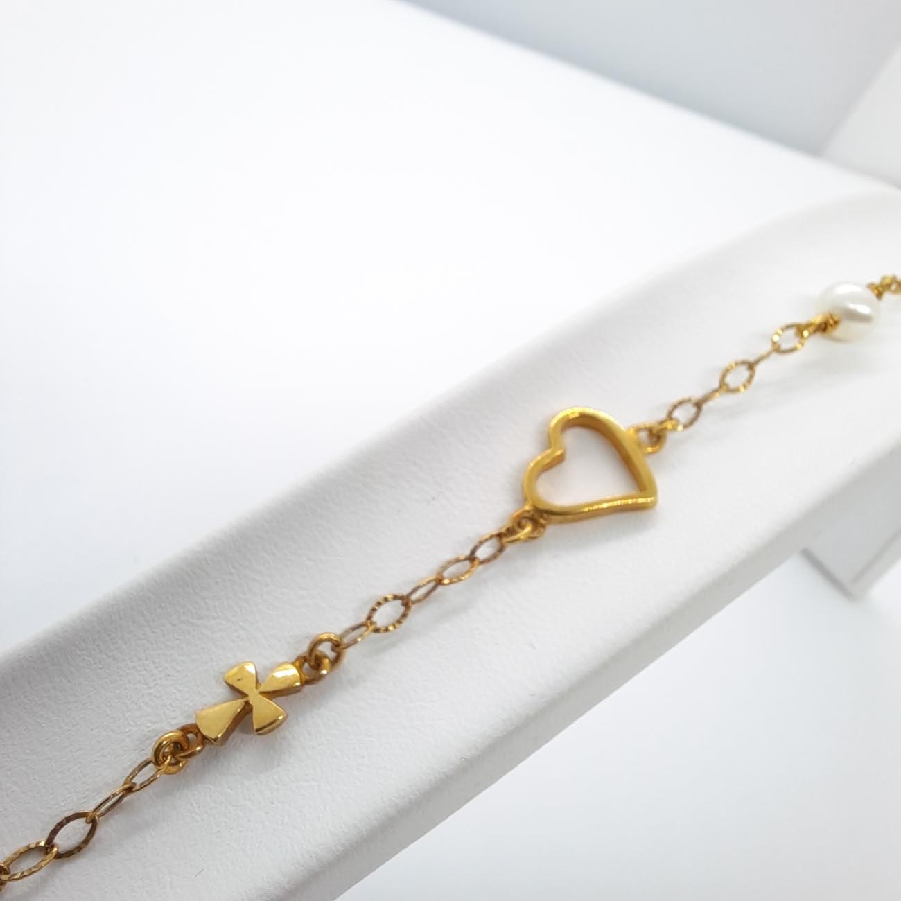 Επιχρυσωμένο ασήμι βραχιόλι καρδιά πέρλα σταυρός