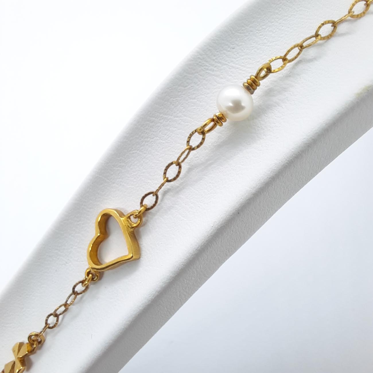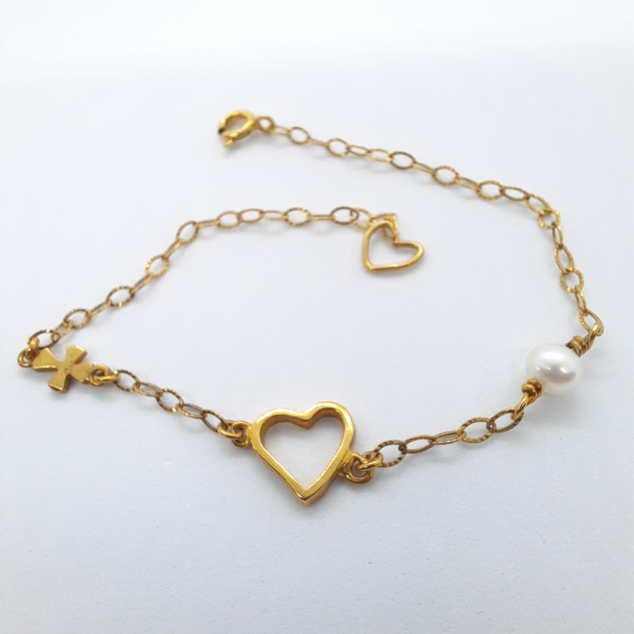 Πανέμορφο, κομψό βραχιόλι, με καρδιά, πέρλα και σταυρουδάκι, από επιχρυσωμένο ασήμι 9.25 , ιδανικό για κάθε περίσταση και κάθε ηλικιακή ομάδα.