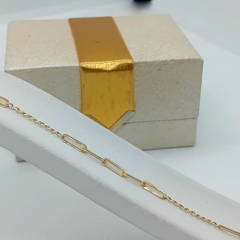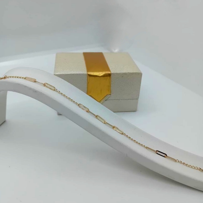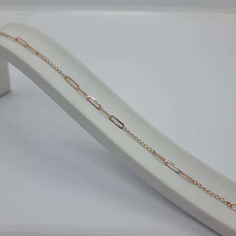 Κομψό λιτό βραχιόλι από χρυσό 14 ΚΑΡΑΤΙΩΝ, κατάλληλο για δώρο στην αγαπημένη σας ή στη κορούλα σας! Το design είναι αλυσίδα με κρίκους παραλληλόγραμμους που εναλλάσσονται με μικρούτσικα κρικάκια.