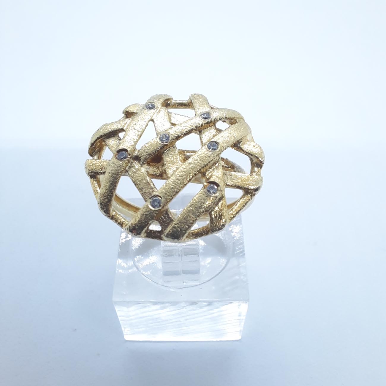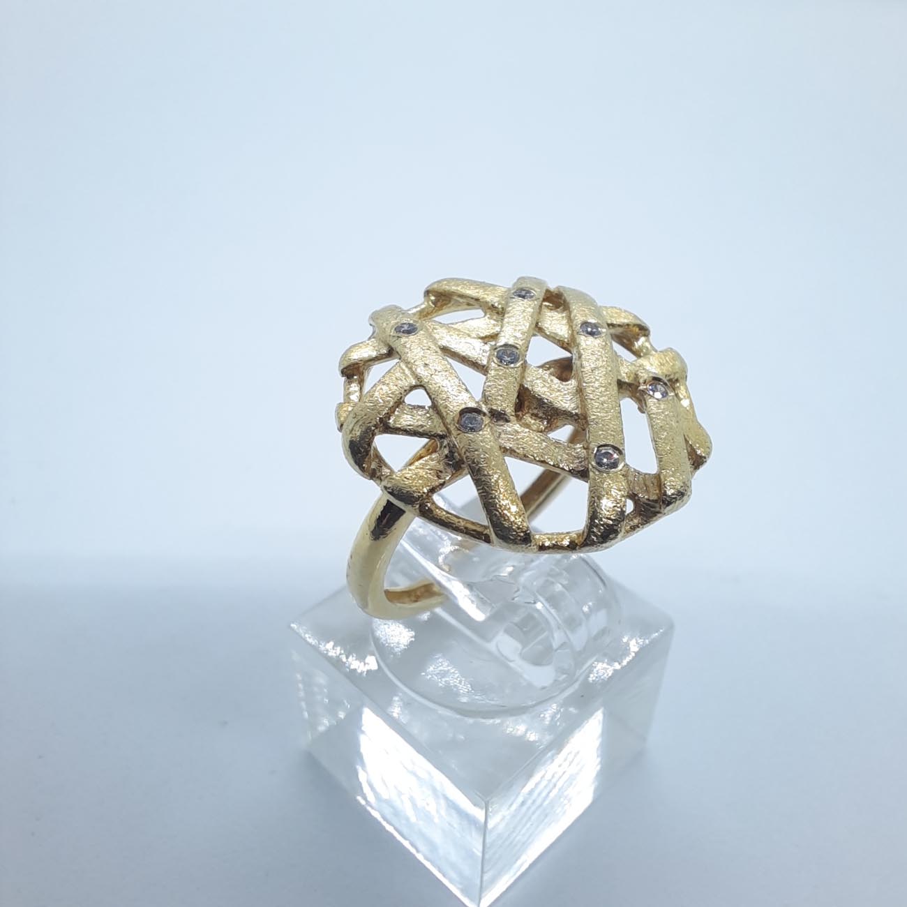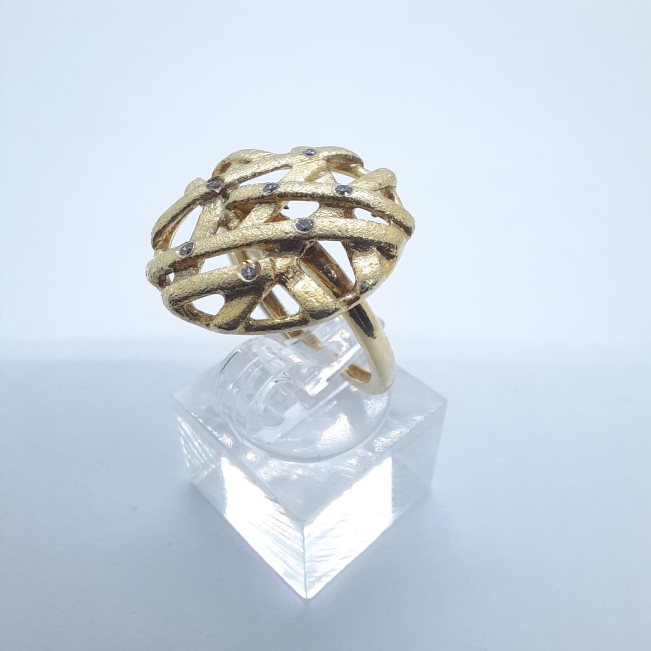 Εμπνευσμένο από την Αρχαία Ελλάδα, ασημένιο επιχρυσωμένο δαχτυλίδι σε μίνιμαλ design , ζαγρέ επιφάνεια, κυκλικό σχήμα με μικρά διακριτικά ζιργκόν.