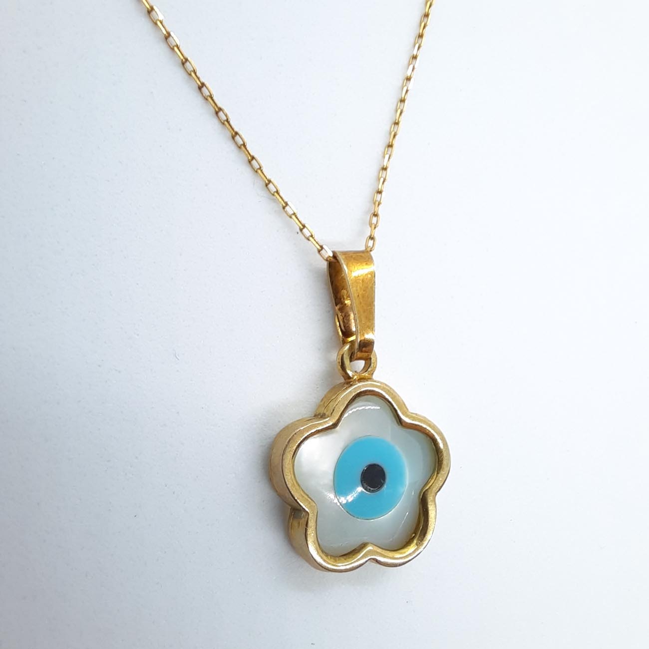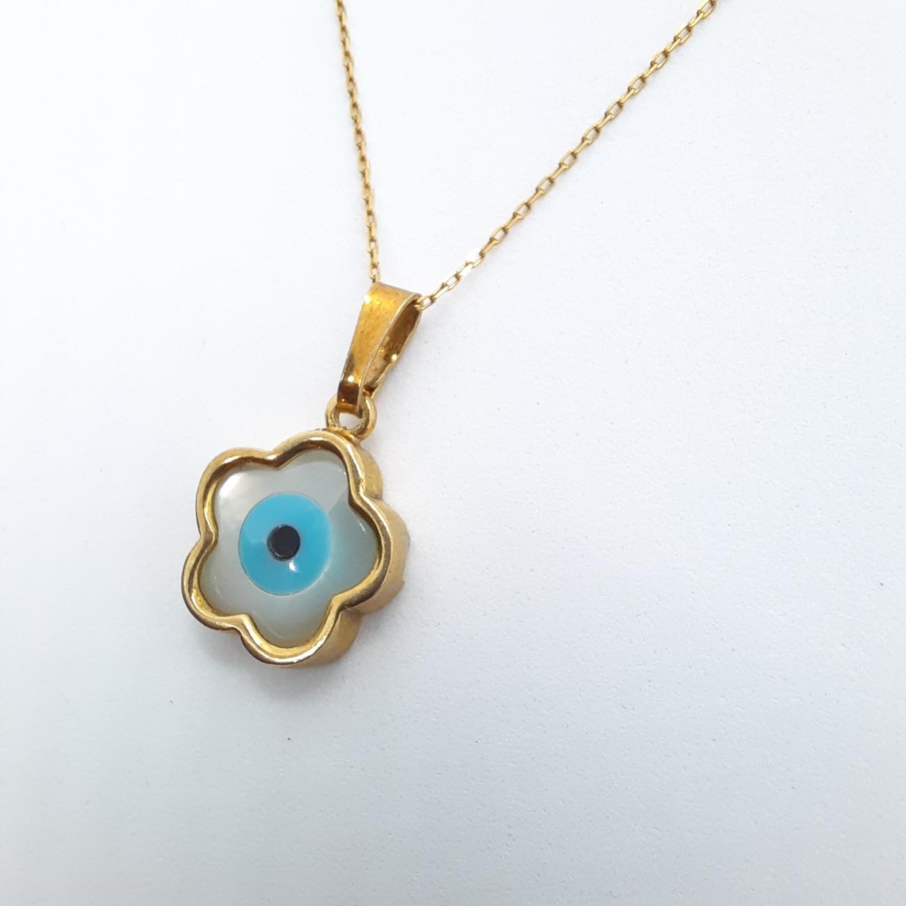 Καταπληκτικό ματάκι σε σχήμα άνθους από επιχρυσωμένο ασήμι με την αλυσίδα του, ιδανικό κόσμημα για κάθε μοντέρνα γυναίκα.