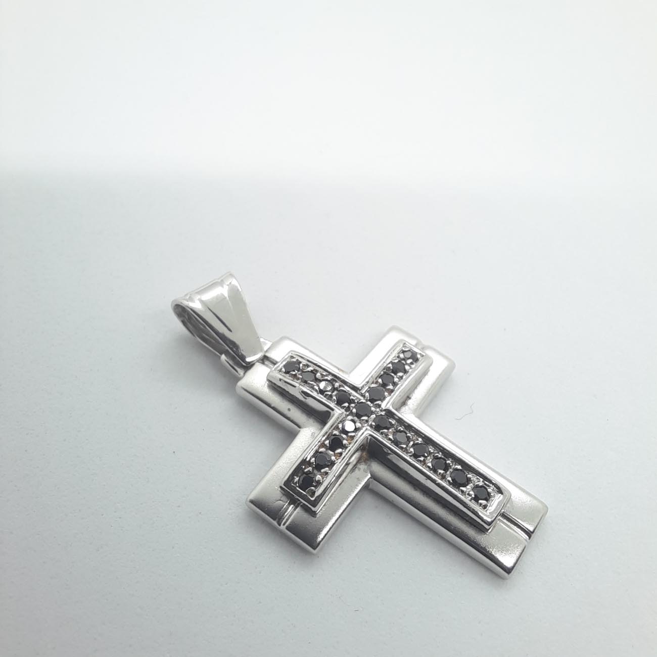 Λευκόχρυσος σταυρός Κ14  ΜΑΥΡΑ ΖΙΡΓΚΟΝ