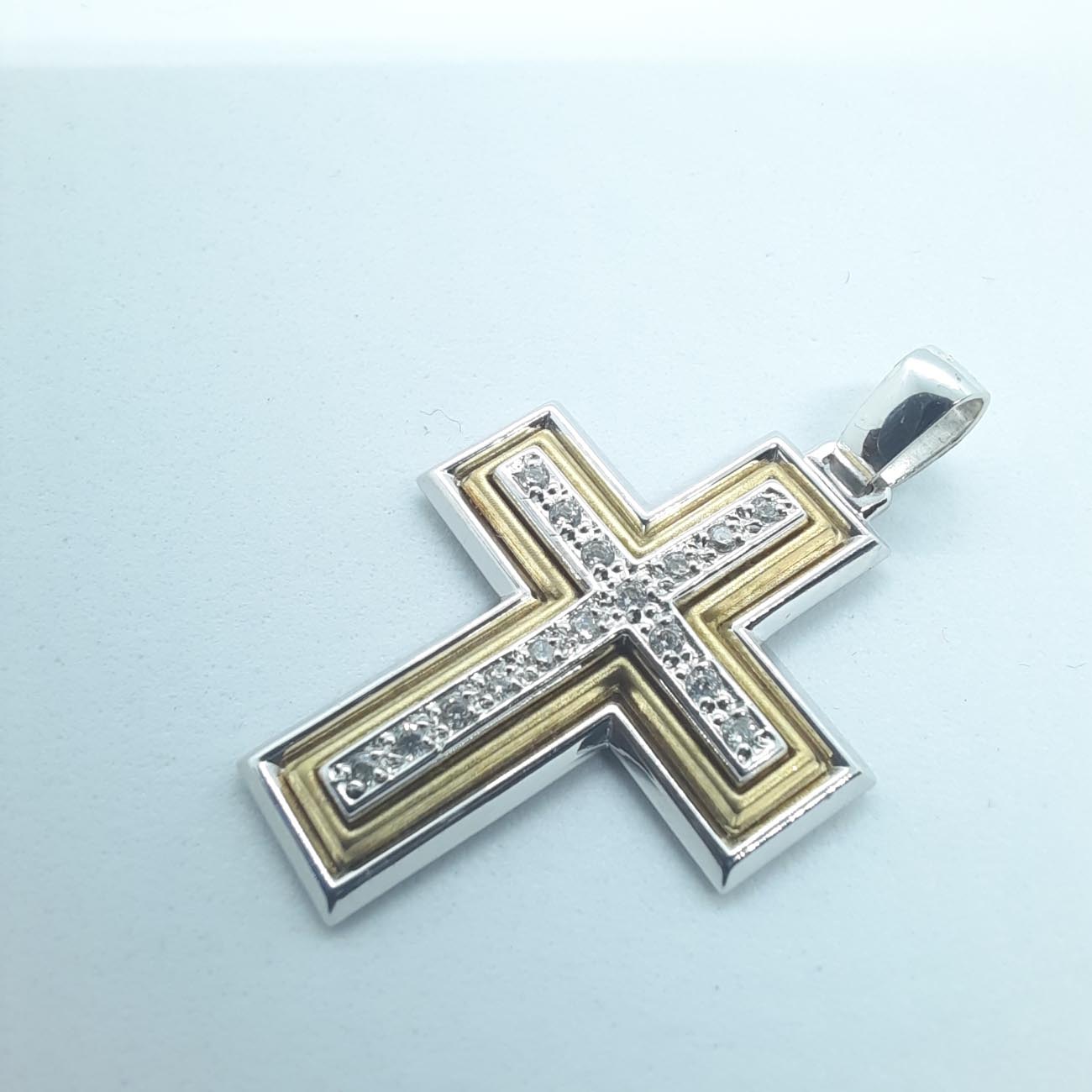 Λευκόχρυσος και χρυσός σταυρός Κ14 2 όψεων