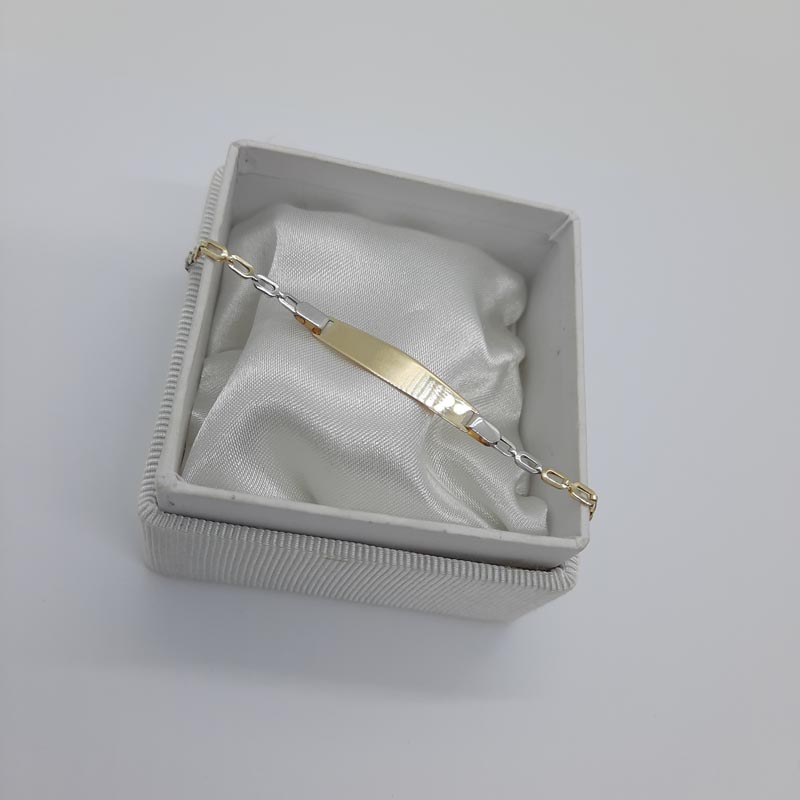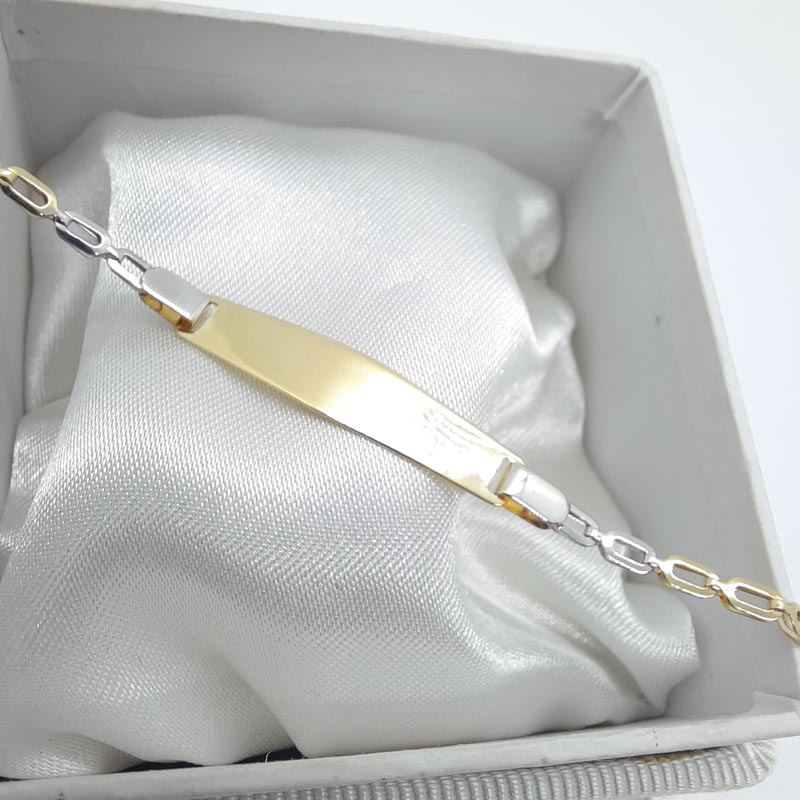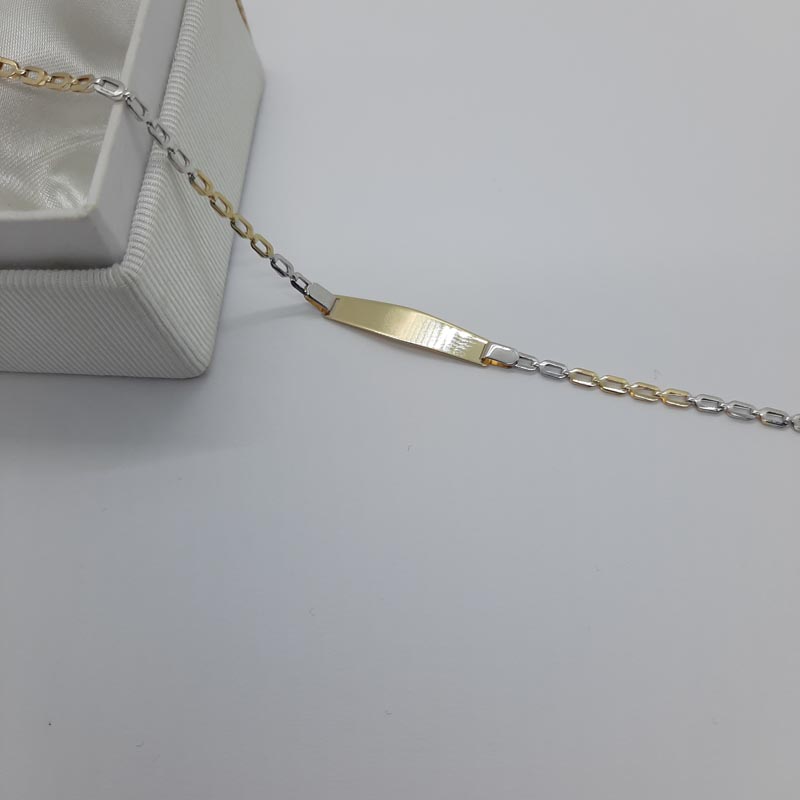 Με χαρακτηριστικά όμορφη αλυσίδα, από χρυσό και λευκόχρυσο, υπέροχη ταυτότητα με λιτή πλακέτα, για αγόρι ή κορίτσι, πολύτιμο δώρο που θα το φοράει περήφανα για πολλά χρόνια.