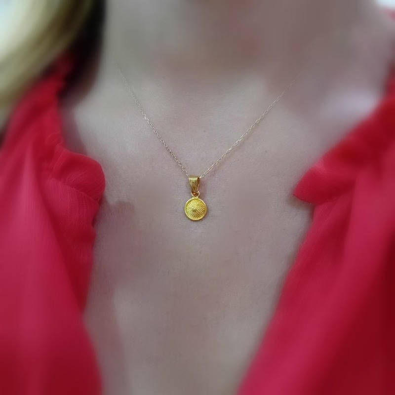 Για την γυναίκα που επιλέγει την ποιότητα σε κάθε της βήμα, ένα εξαιρετικό μενταγιόν εμπνευσμένο από το Βυζάντιο, σε σχήμα μικρού τρούλου, από χρυσό 14 καρατίων. (ΔΕΝ ΣΥΜΠΕΡΙΛΑΜΒΑΝΕΤΑΙ Η ΑΛΥΣΙΔΑ ΤΗΣ ΦΩΤΟΓΡΑΦΙΑΣ)