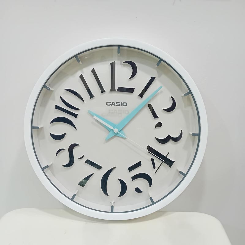 Μοντέρνο μίνιμαλ ρολόι τοίχου κατάλευκο καντράν και κατάλευκο πλαίσιο , με μαύρα πολύ μεγάλα ευανάγνωστα νούμερα και δείκτες σε απαλό γαλάζιο, ιδανικό για μοντέρνους χώρους, υπνοδωμάτια, γραφεία κλπ.