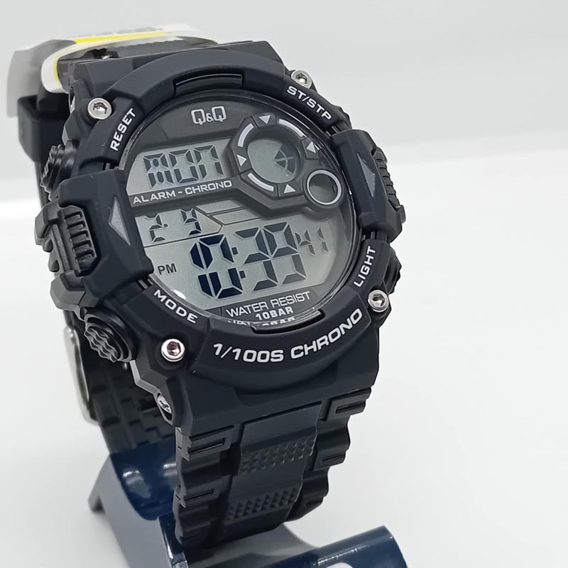 ΑΝΔΡΙΚΟ ΡΟΛΟΙ Q&Q με μπαταρία λιθίου, με λουράκι μαύρο καουτσούκ, αδιάβροχο στα 10 bar, με ξυπνητήρι, χρονόμετρο, ημερομηνία, 2η ψηφιακή ώρα, φως και βιδωτό καπάκι.