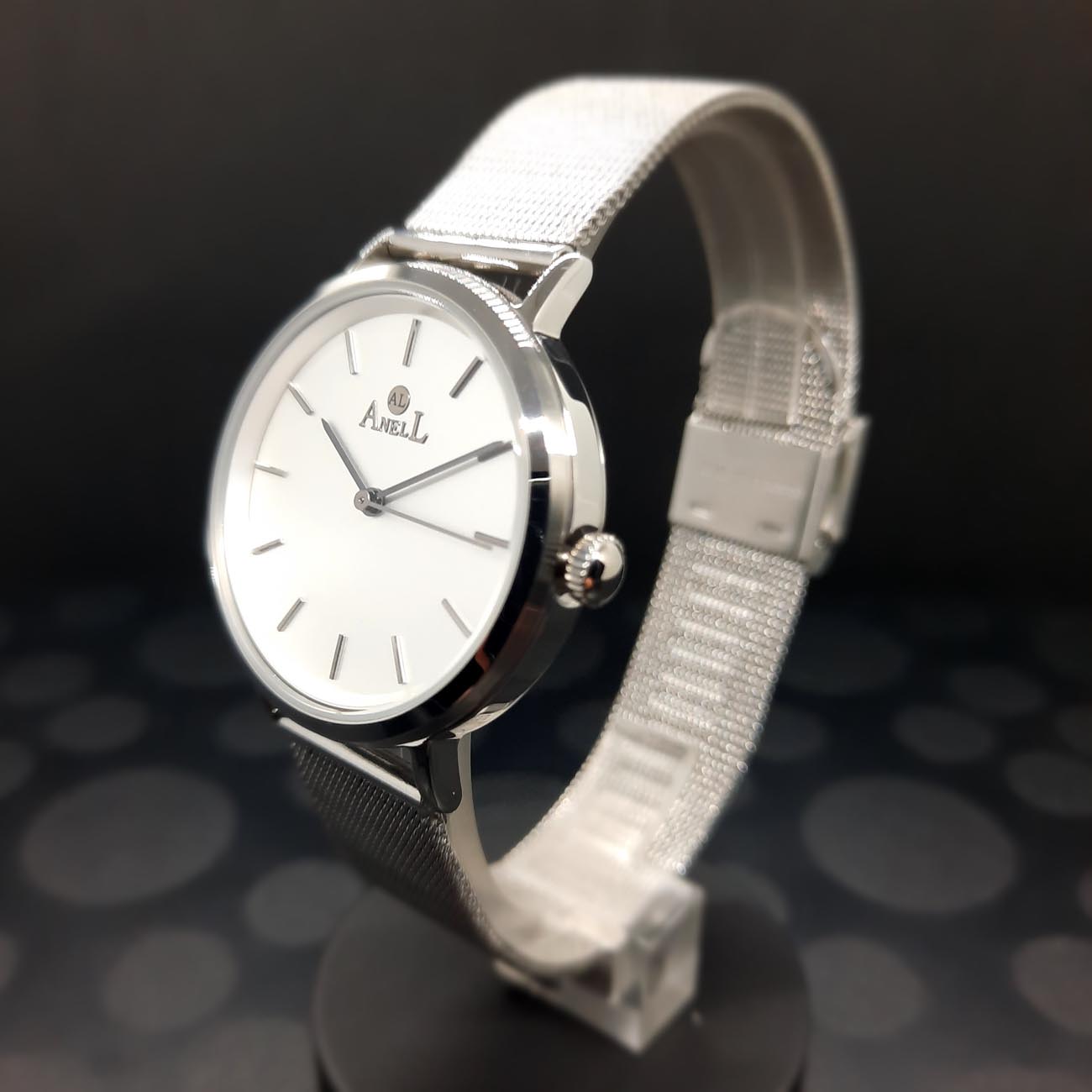 ΡΟΛΟΙ ANELL γυναικείο, ατσάλινο με μπρασελέ ψάθα σε νίκελ χρώμα, αδιάβροχο στις 3 ατμ., ασφαλείας κούμπωμα, και ένα χρόνο γραπτή εγγύηση καλής λειτουργίας του.